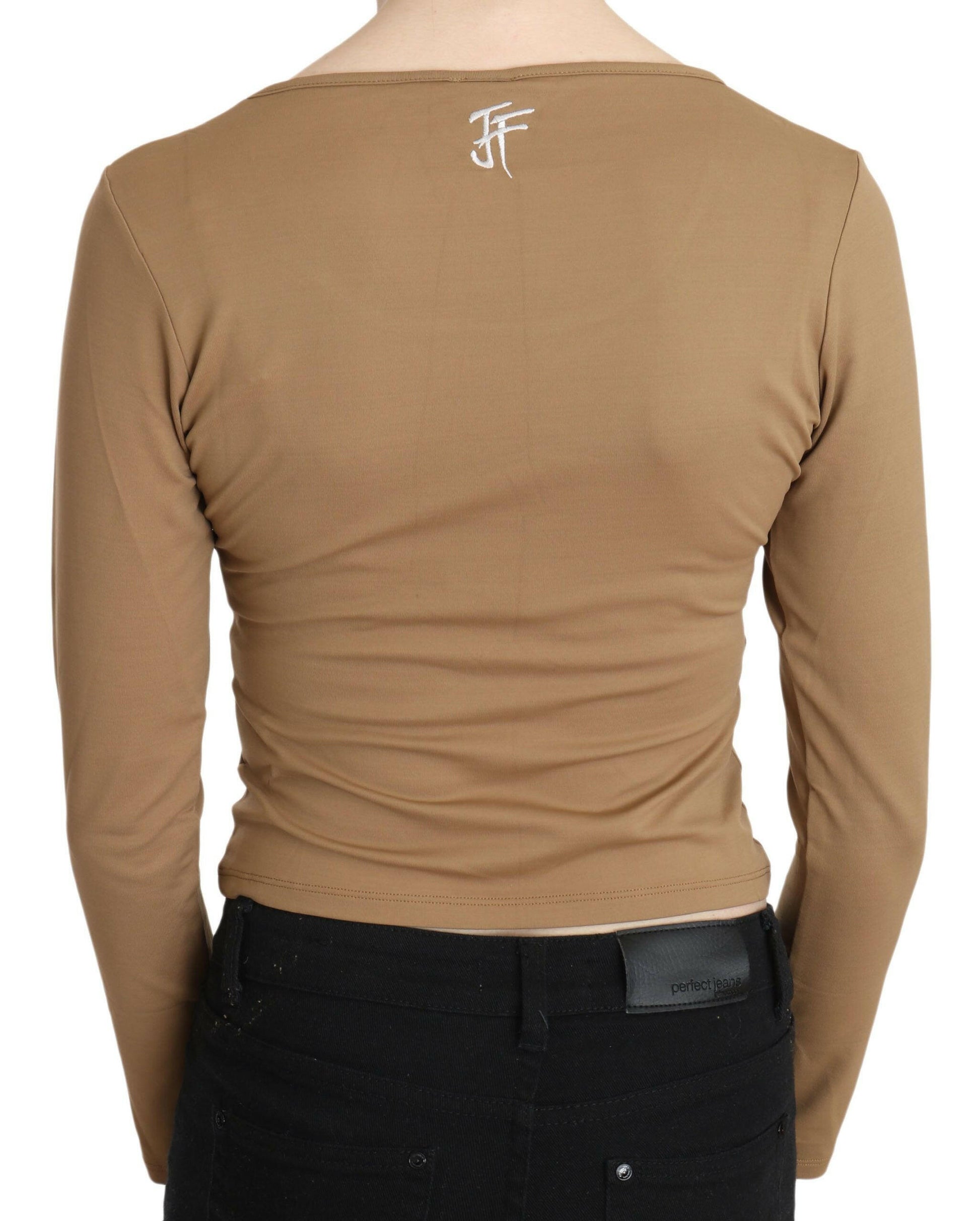 Modell: Rundhals-Langarm-Crop-Top mit schmalem Schnitt Farbe: Braun Material: 95 % Nylon, 5 % Elastan