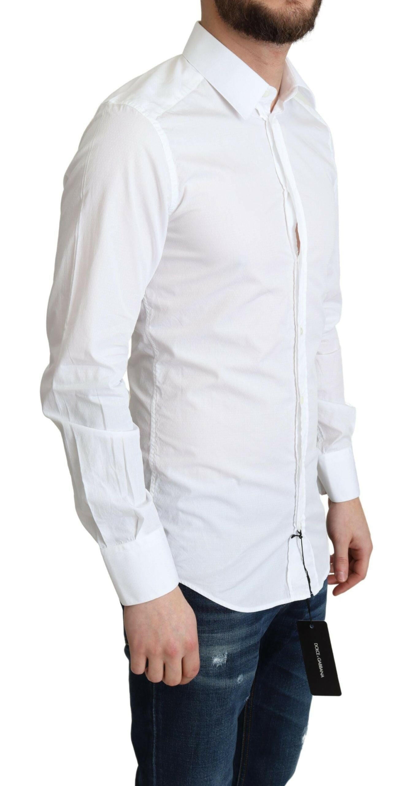 Dolce & Gabbana – Weißes, langärmliges Herrenhemd aus Baumwolle