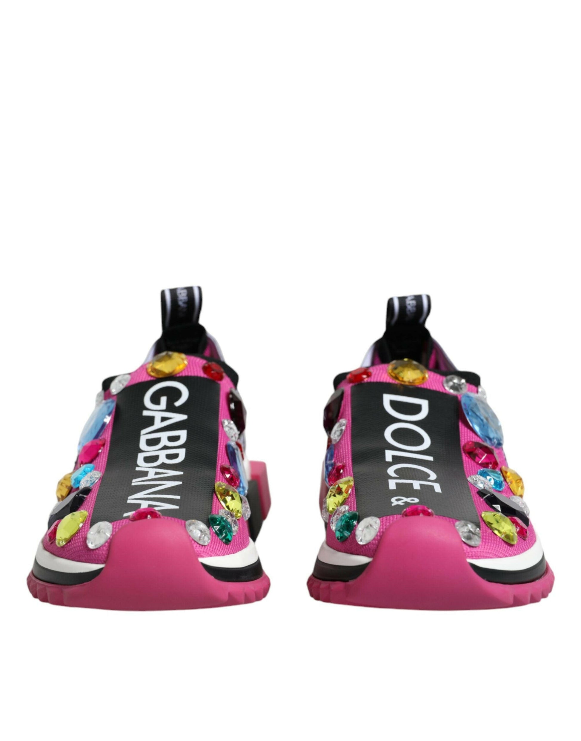 Wunderschöne, brandneue, 100 % authentische Polyester-Sneaker von Dolce & Gabbana mit Etikett. Aus Technostoff, mit Strasssteinen, Markenlogo, einfarbig mit Applikationen, Stoffinnenseite, runder Zehenpartie, flacher Gummisohle. Modell: Sorrento Sneakers Farbe: Rosa Material: 70 % Polyester, 20 % Nylon, 5 % Elastan, 3 % Viskose, 2 % Baumwolle Sohle: Gummi Logodetails Hergestellt in Italien Sehr exklusiv und hochwertig verarbeitet