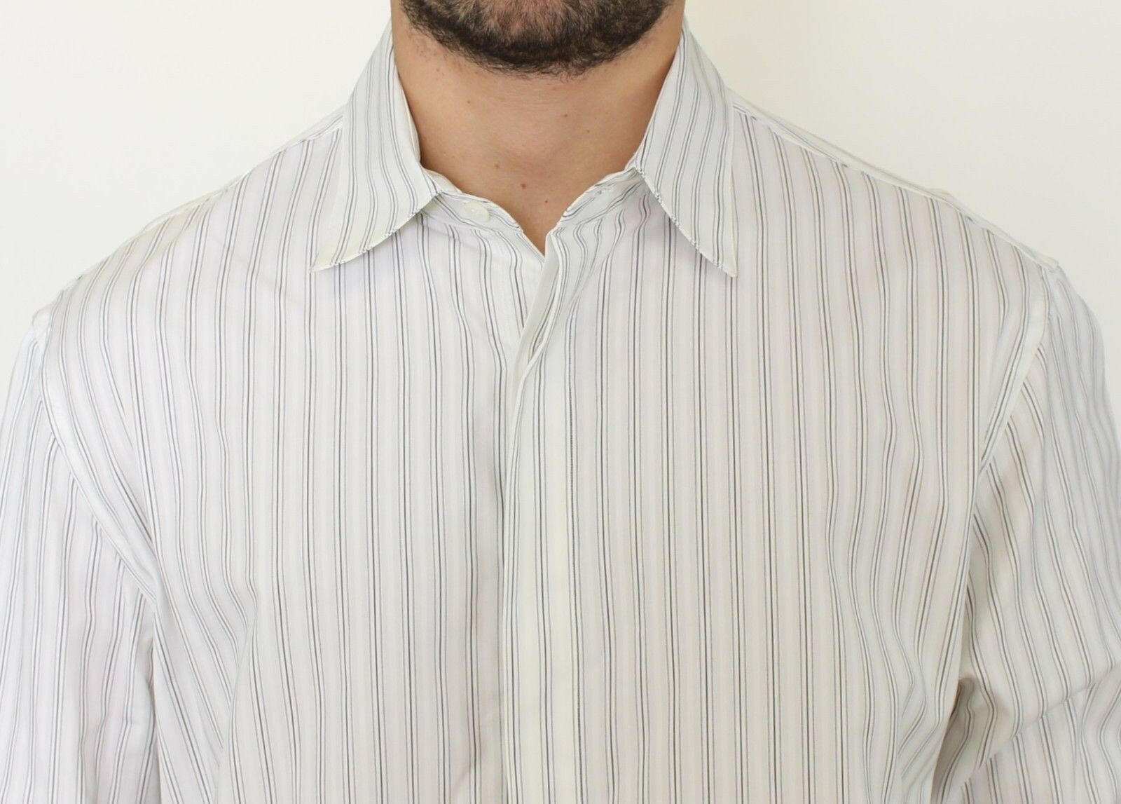 Absolut umwerfend, 100 % authentisch, brandneu mit Etikett, weiß-schwarz gestreiftes Freizeithemd aus Baumwolle von ERMANNO SCERVINO.