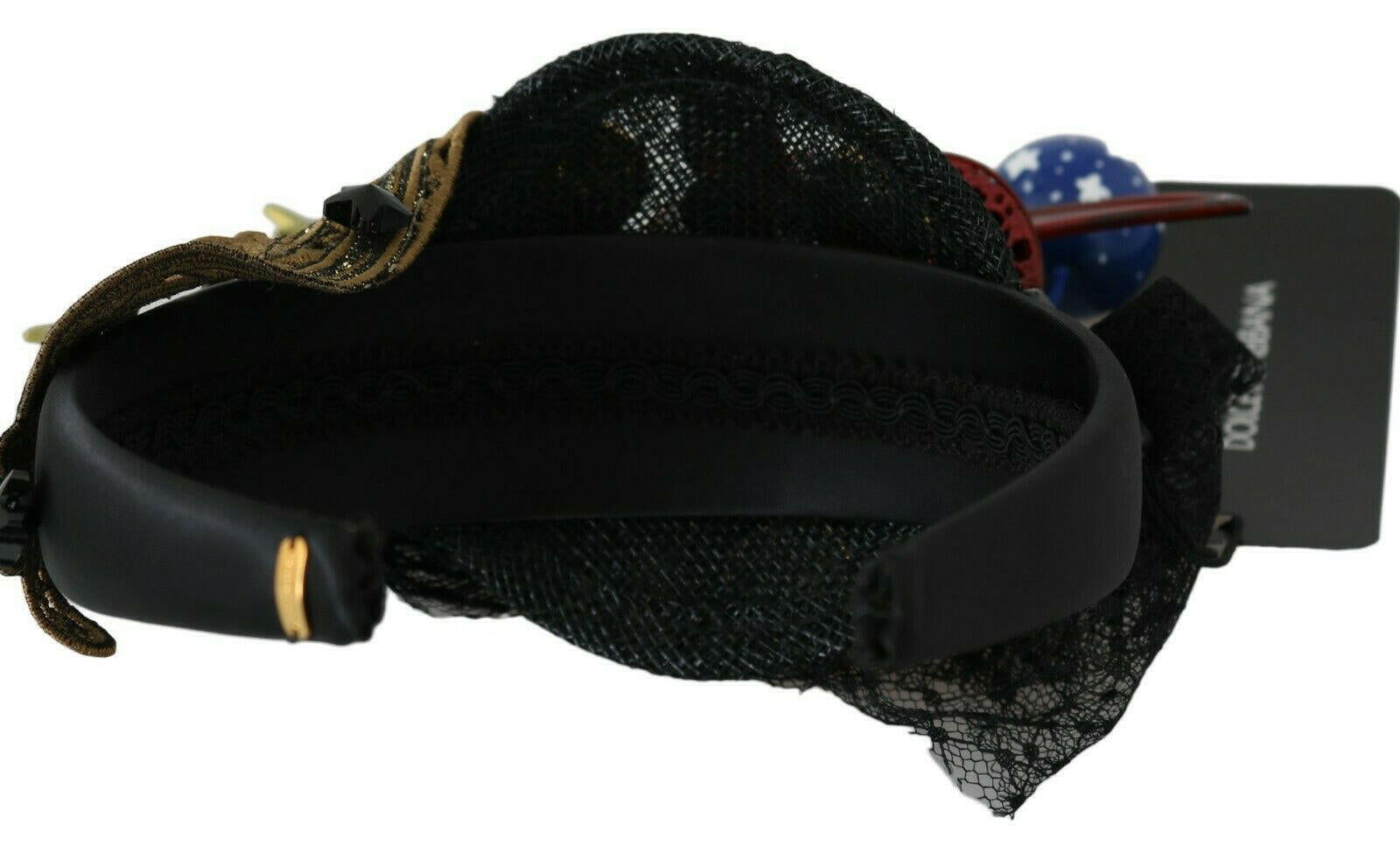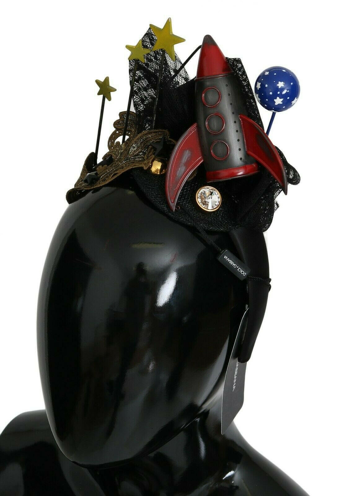 Wunderschönes, brandneues, 100 % authentisches Stirnband von Dolce & Gabbana mit Etiketten und Box. Farbe: Schwarz, mehrfarbige Details Modell: Stirnband Diadem Tiara Motiv: Raumschiff, Mond, Sterne, Hergestellt in Italien Logodetails Sehr exklusiv und selten Material: 10 % AB, 10 % AC, 30 % PA, 3 % PC, 2 % Wolle, Sonstiges