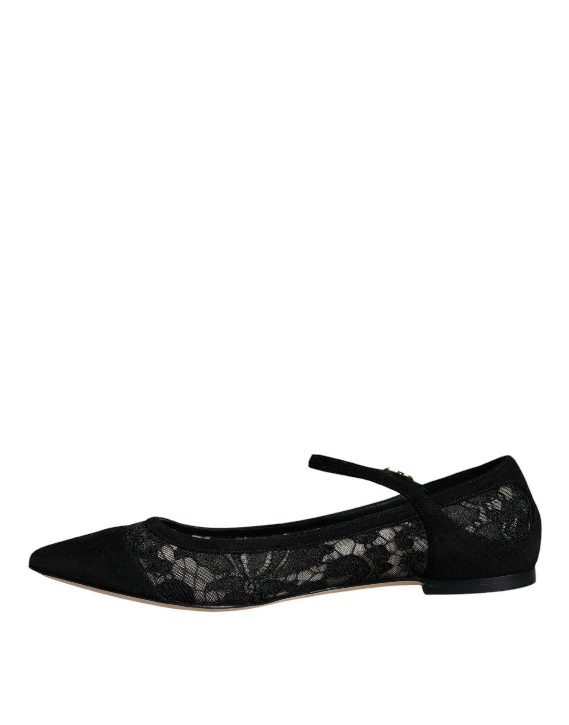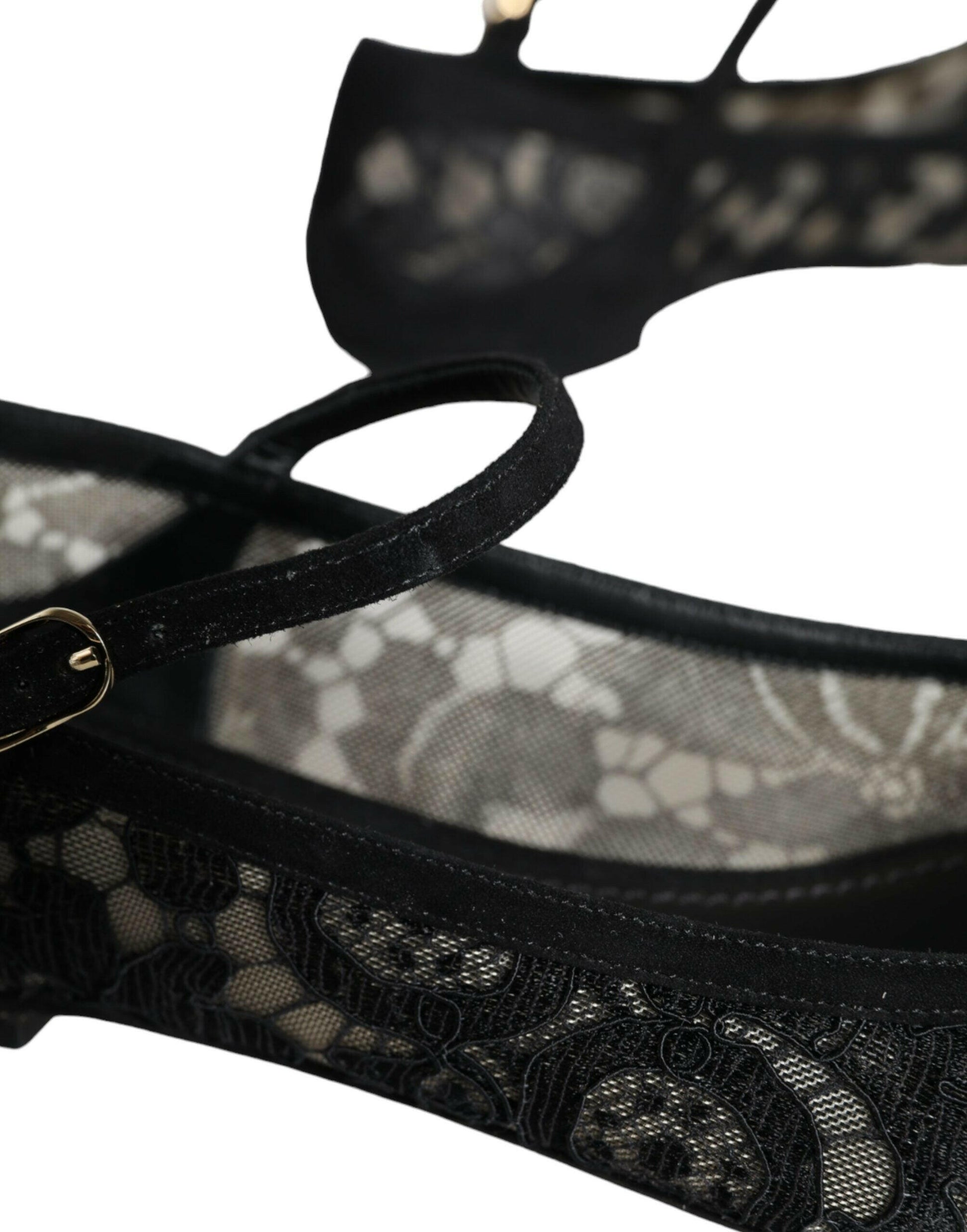 Wunderschöne, brandneue, 100 % authentische Dolce & Gabbana BELLUCCI-Ballerinas mit Spitze und Etikett. Modell: Flache Schuhe Farbe: Schwarz Material: 45 % Ziegenleder, 28 % Nylon, 16 % Viskose, 11 % Baumwolle Ledersohle Schnallenverschluss Logodetails Hergestellt in Italien Sehr exklusiv und hochwertig verarbeitet