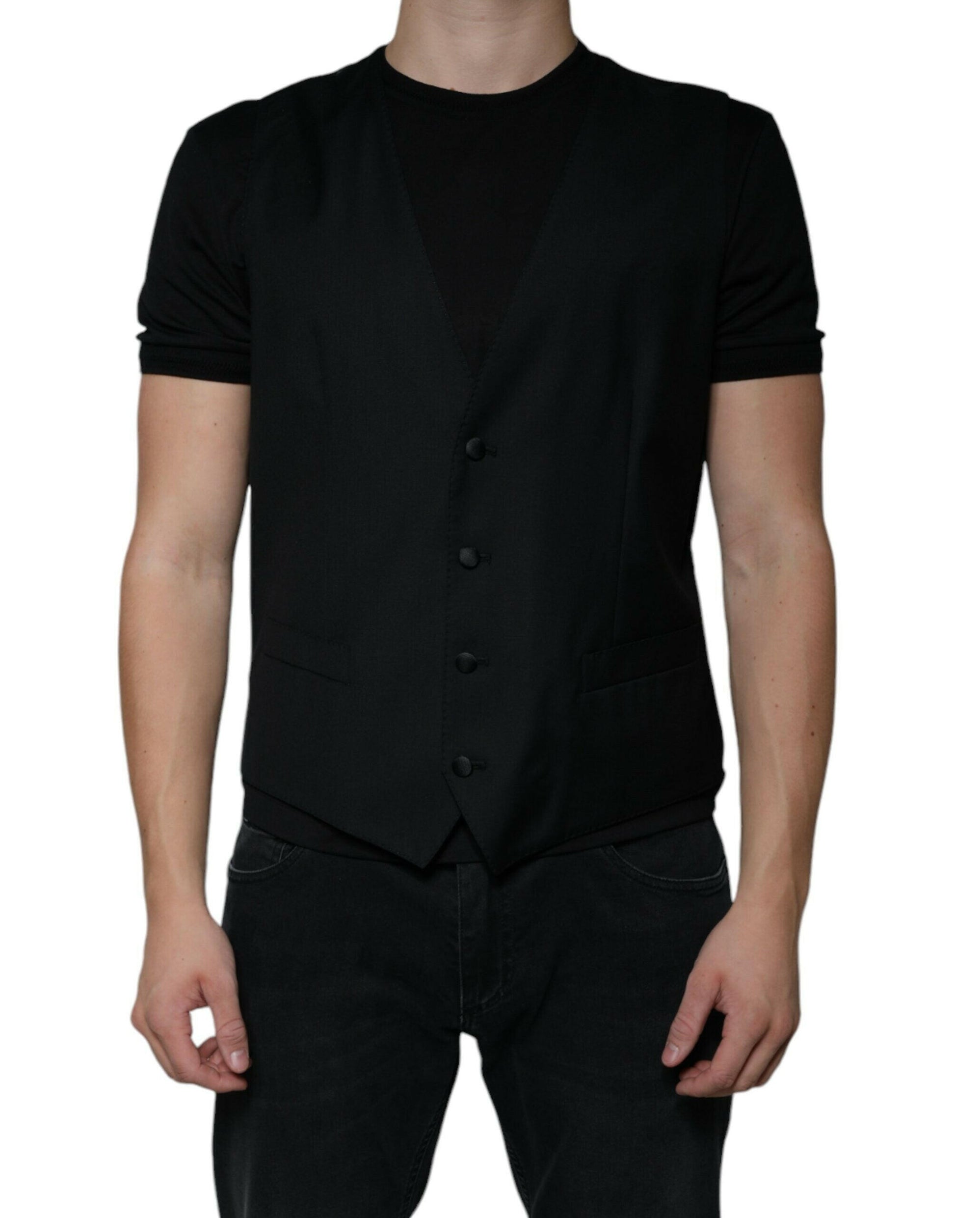 Absolut umwerfend, 100 % authentisch, brandneu mit Etikett, formelle Weste aus Wollmischung von Dolce & Gabbana. Modell: Einreihig Gurt: Verstellbarer hinterer Hüftgurt Farbe: Schwarz Material: 97% Schurwolle 3% Elasthan Futter: 70 % Viskose, 30 % Cupro Durchgehender Knopfverschluss vorne Logodetails Hergestellt in Italien