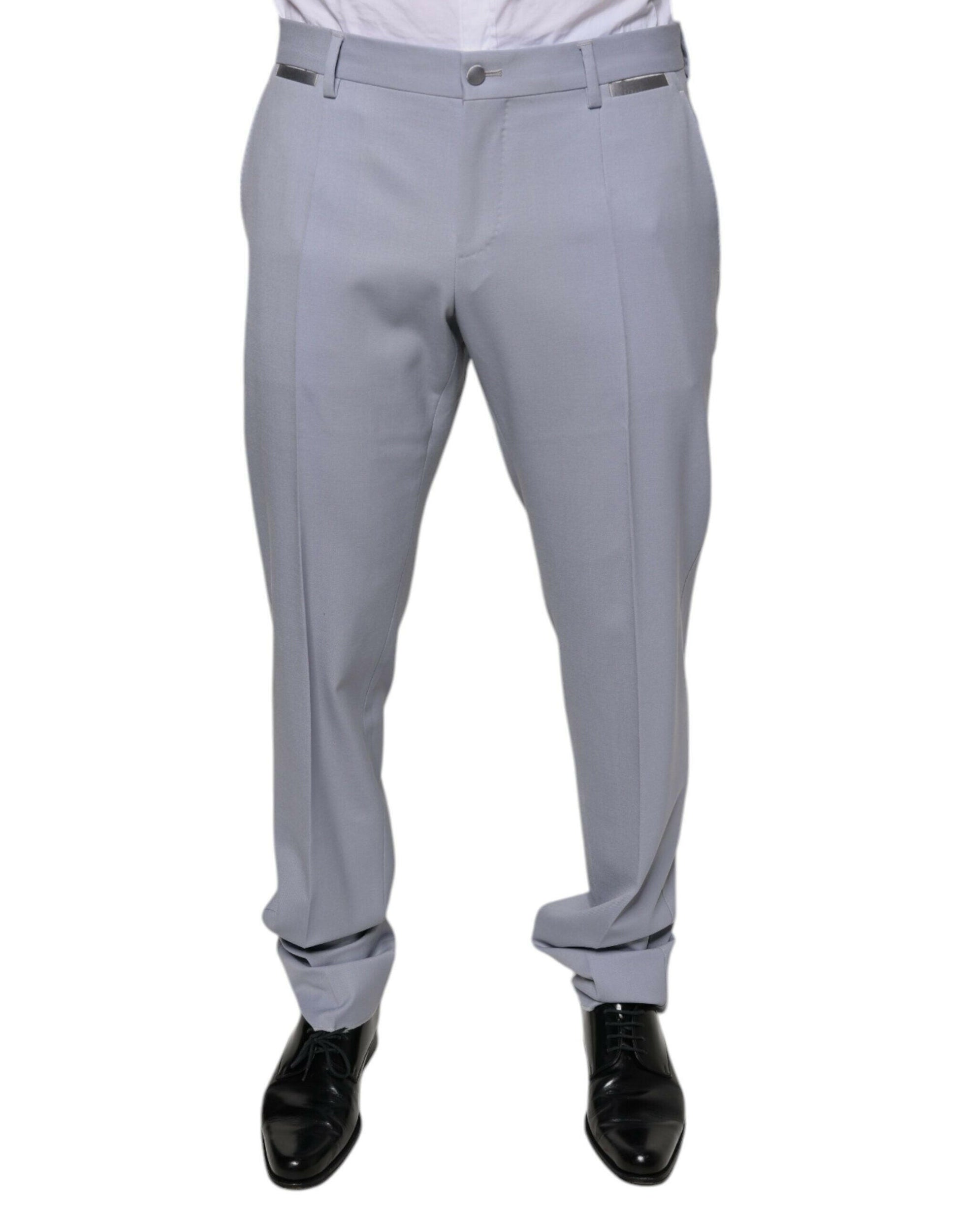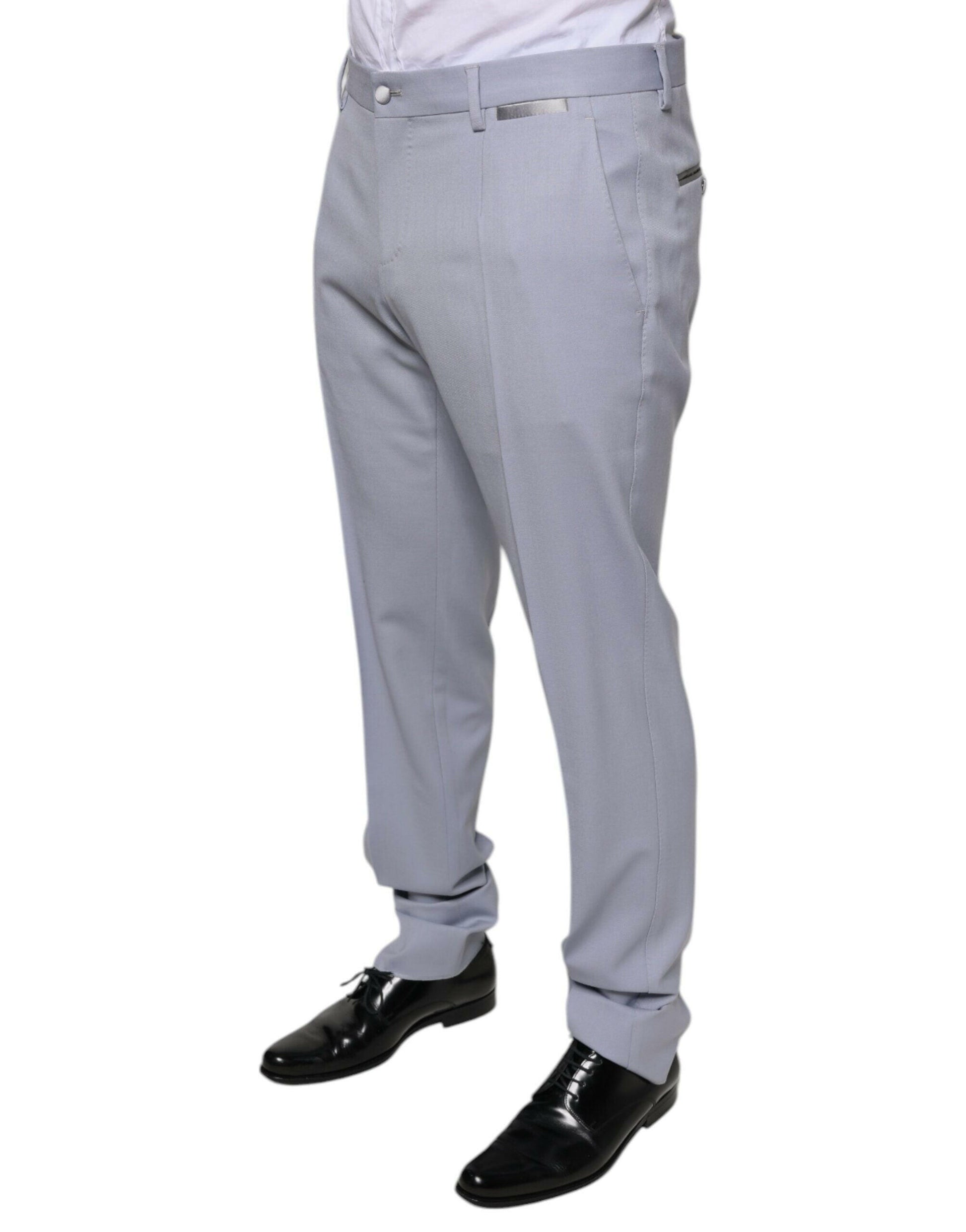 Wunderschöne, brandneue Anzughose von Dolce & Gabbana mit Etikett, 100 % authentisch, aus Wollmischung gefertigt. Stil: Anzughose Farbe: Hellgrau Passform: Normale Passform Material: 87% Wolle 8% Seide 3% Elasthan 2% Polyester Futter: 100 % Viskose Reißverschluss und Knopfverschluss Logodetails Hergestellt in Italien