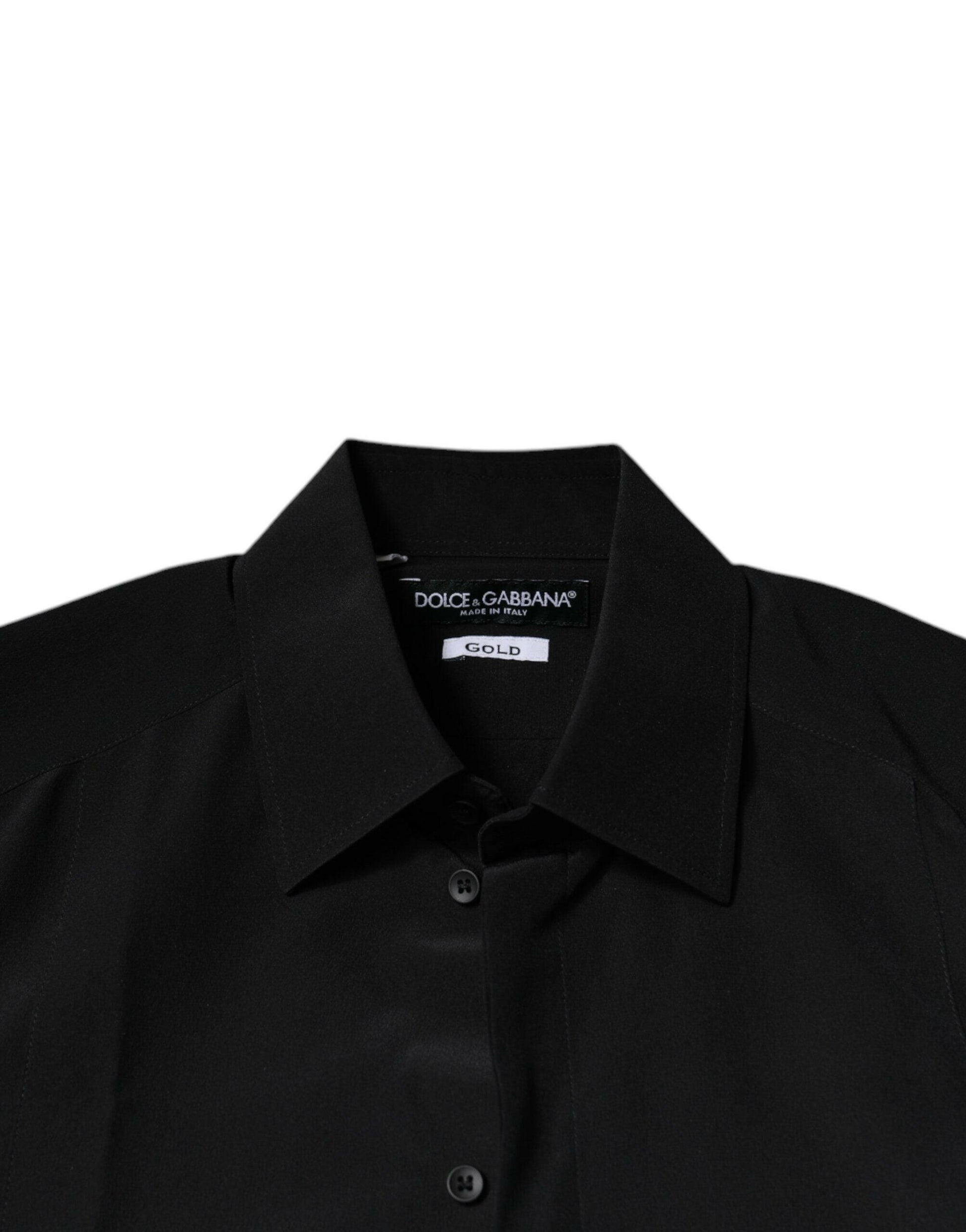 Dolce & Gabbana Schwarzes Seidenhemd mit langen Ärmeln und GOLD