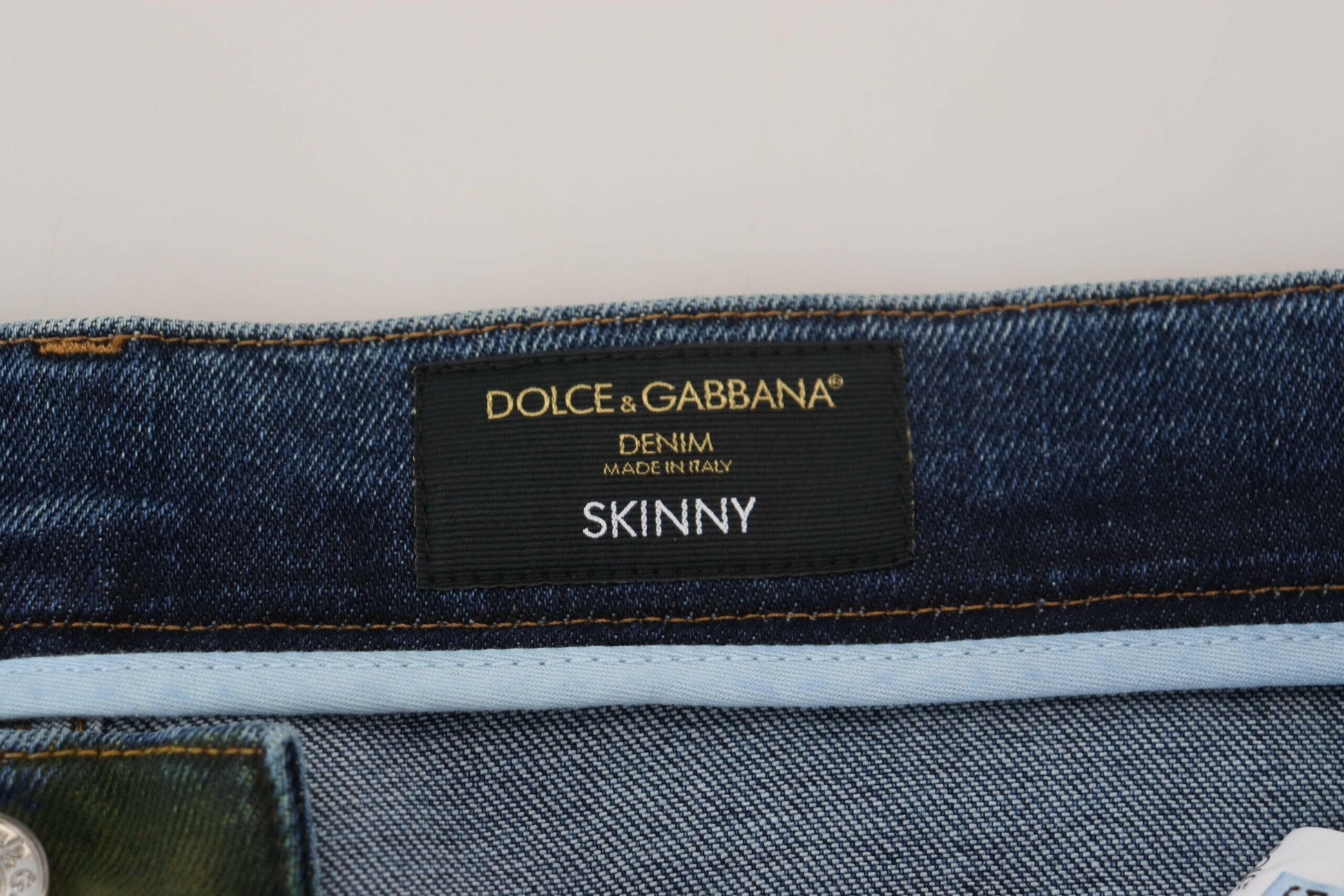Wunderschöne, brandneue Jeans mit Etikett, 100 % authentische Dolce & Gabbana-Jeans. Modell: SKINNY, Jeanshose Farbe: Blau und Grün gewaschen Passform: Skinny, Slim Material: 98 % Baumwolle, 2 % Elasthan Knopf- und Reißverschluss Logodetails Hergestellt in Italien