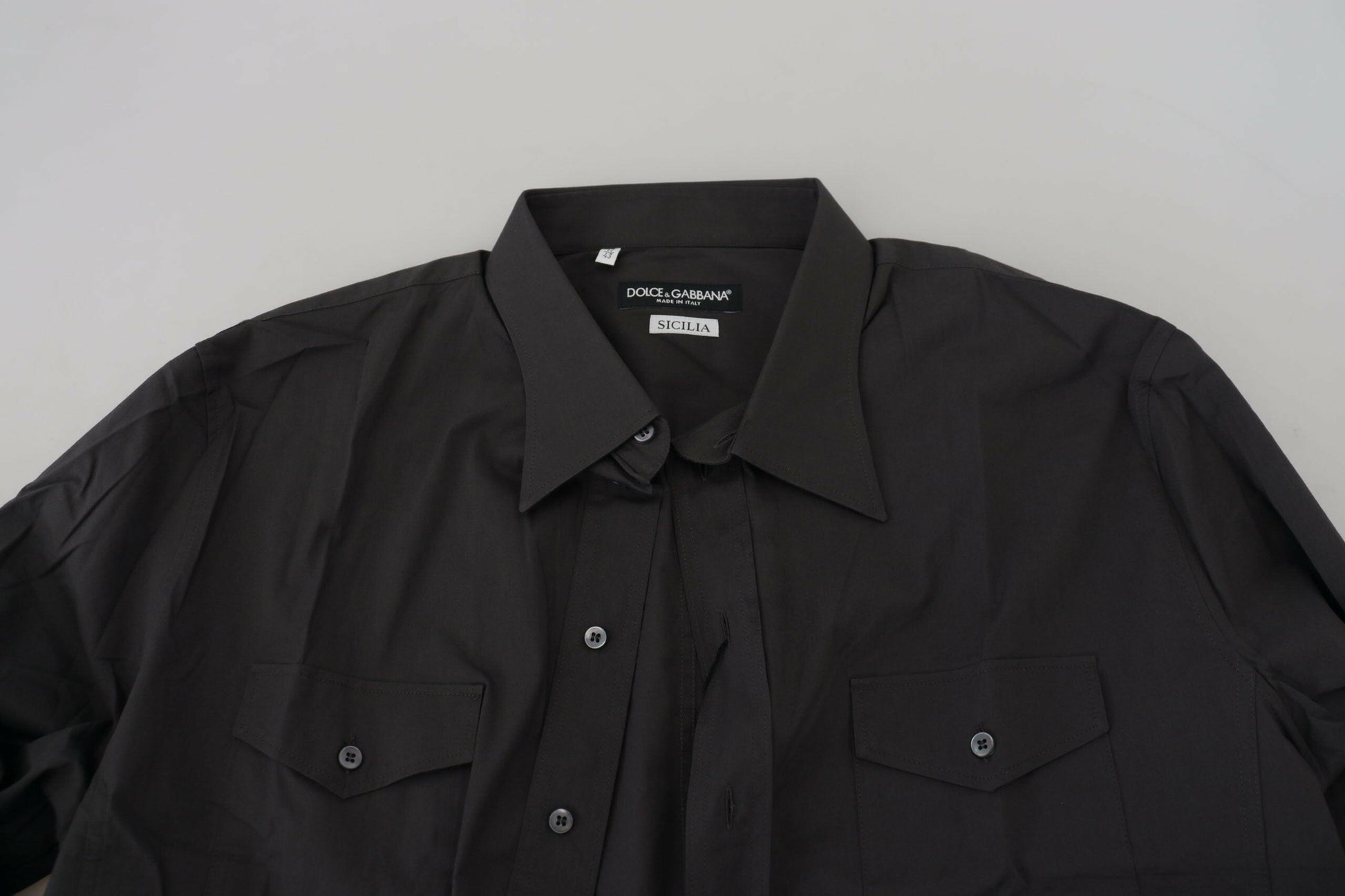 Absolut umwerfend, 100 % authentisch, brandneu mit Etikett, Dolce & Gabbana-Hemd. Modell: SICILIA, formelles Hemd Passform: Slim Fit Material: 96 % Baumwolle, 4 % Elasthan Farbe: Grau Knopfverschluss vorne Details Logo Hergestellt in Italien