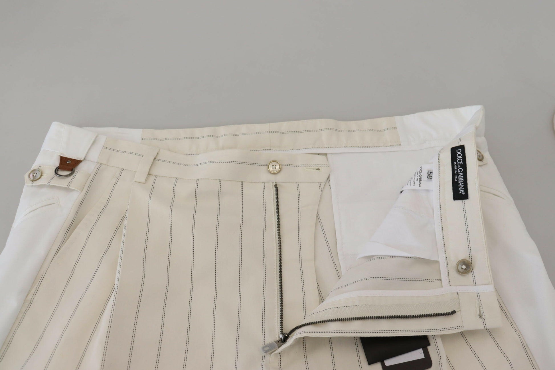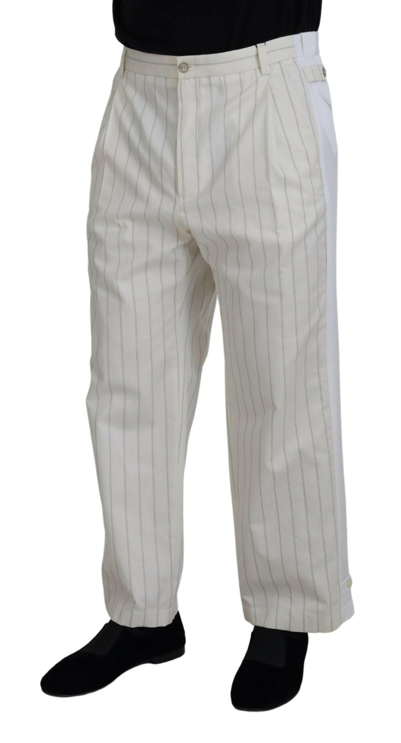 Absolut umwerfend, 100 % authentisch, brandneu mit Etikett, DOLCE & GABBANA-Hose. Dieser Artikel stammt aus der exklusiven MainLine-Kollektion von DOLCE & GABBANA. Modell: Hose Farbe: Weiß Gestreift Material: 92 % Baumwolle, 4 % Polyester, 2 % Ziege, 2 % Elastan Logodetails Hergestellt in Italien