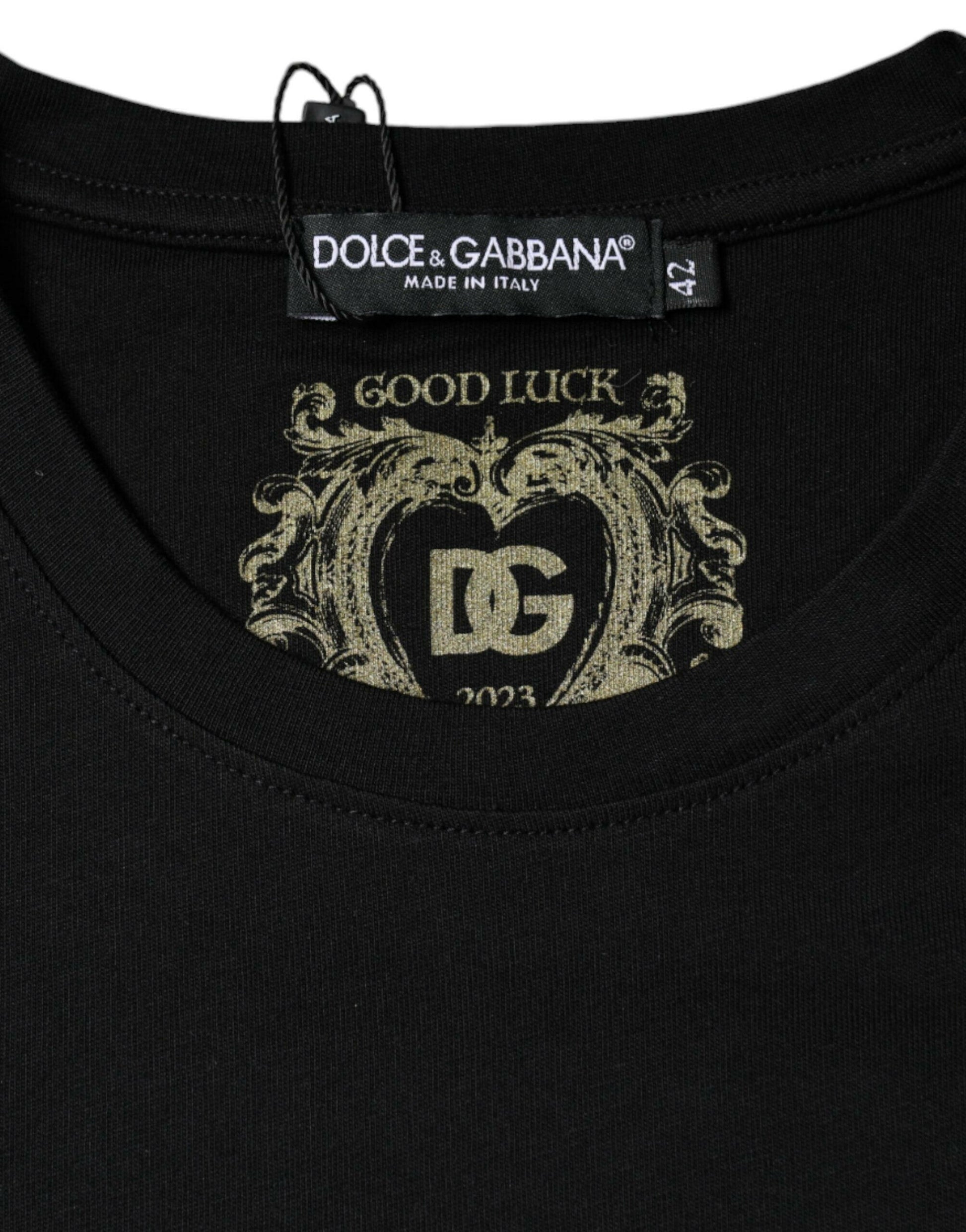 Dolce & Gabbana – Schwarzes, kurzärmliges T-Shirt aus Baumwolle mit Rundhalsausschnitt
