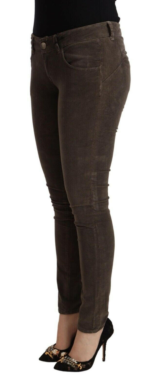 Acht Slim Fit Jeans aus Baumwolle in Braun mit niedriger Taille