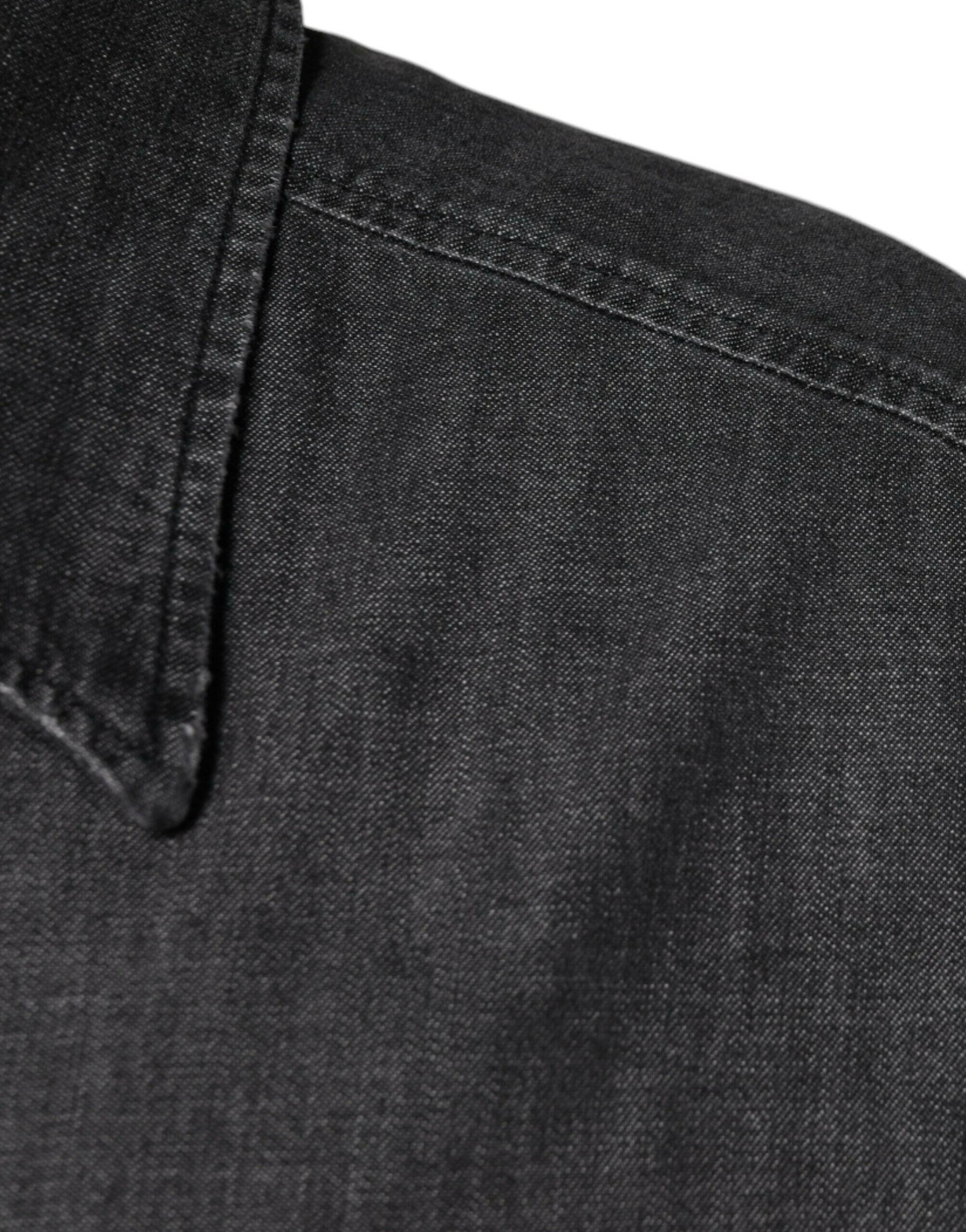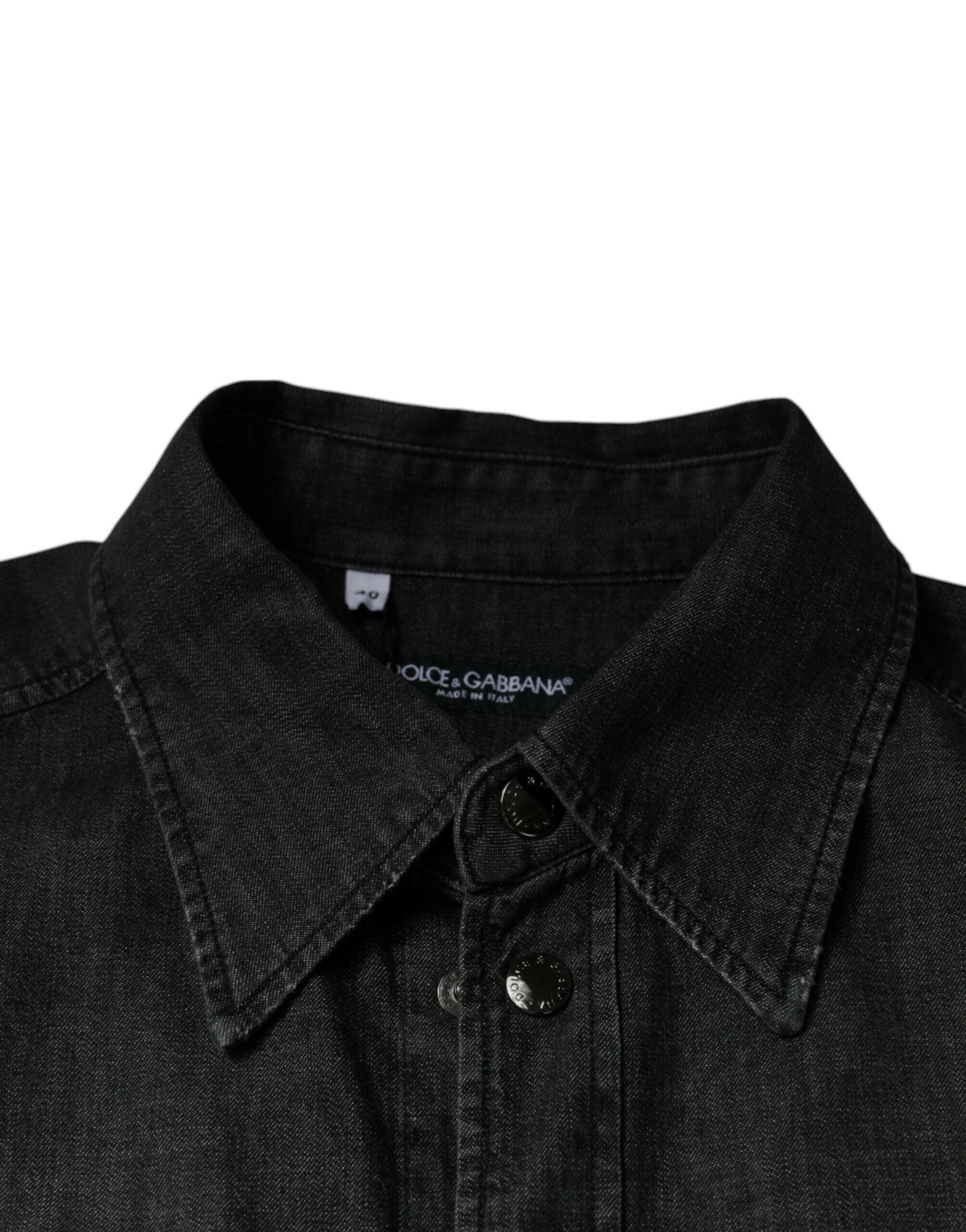 Dolce & Gabbana – Schwarzes Jeanshemd aus Baumwolle mit Knopfleiste und Logo