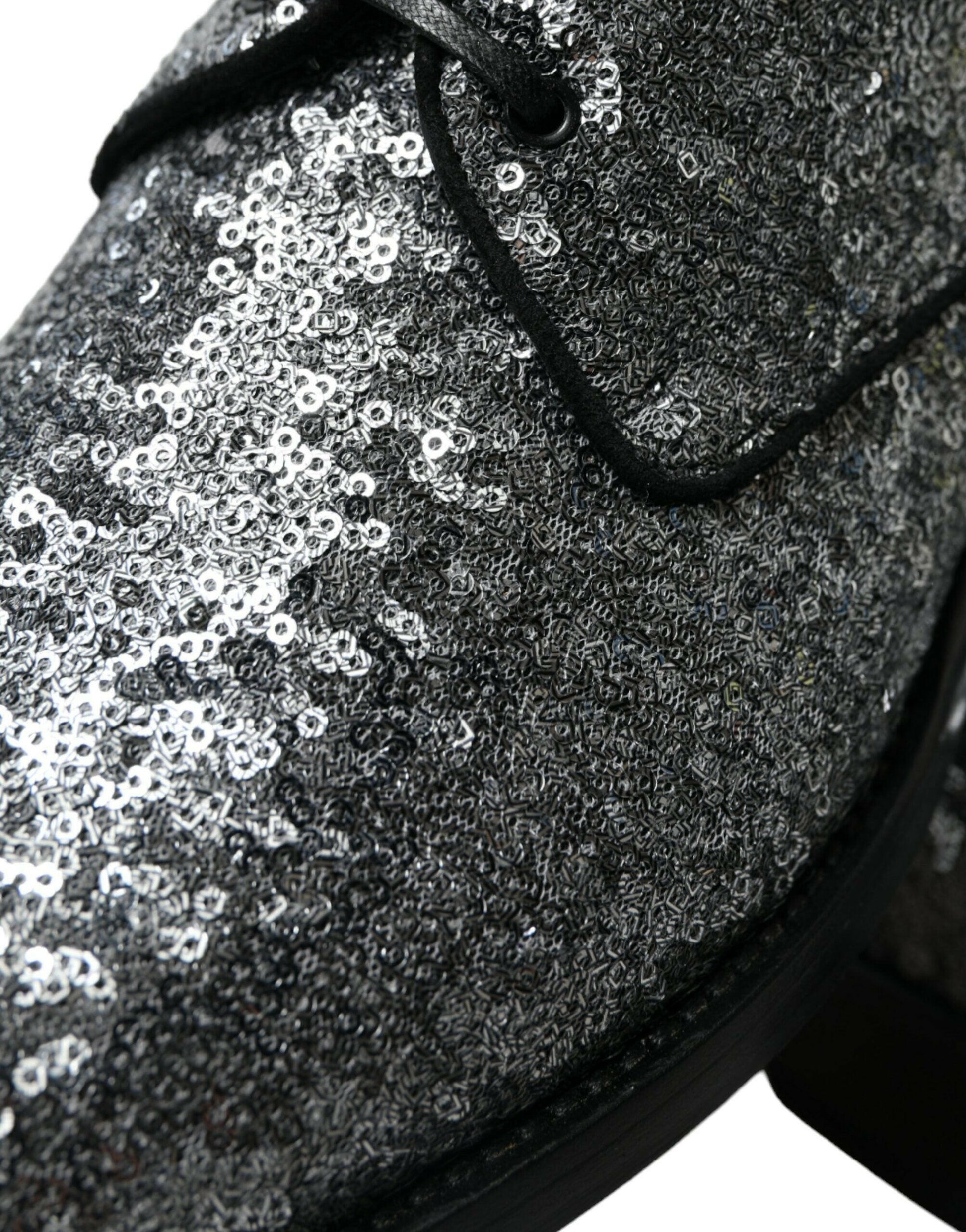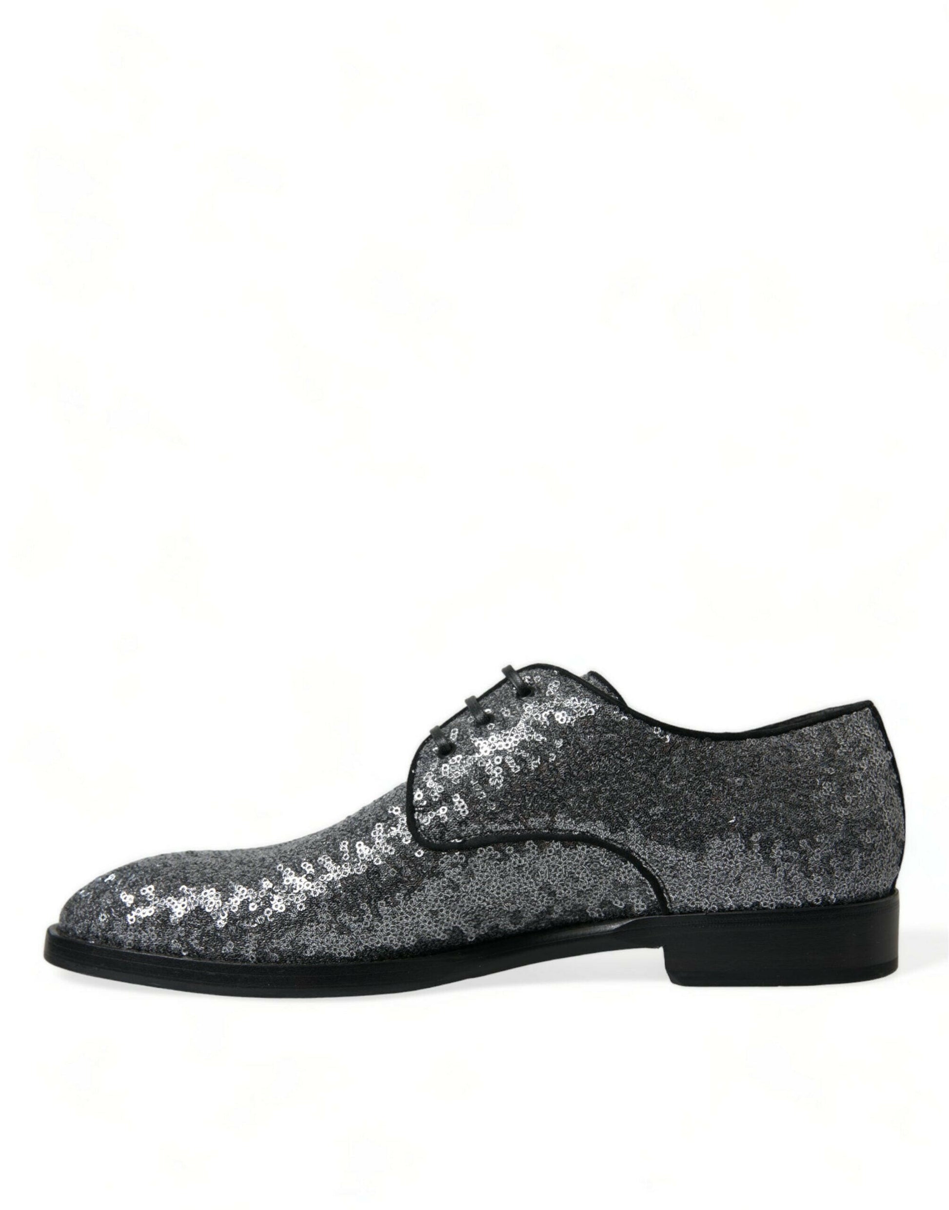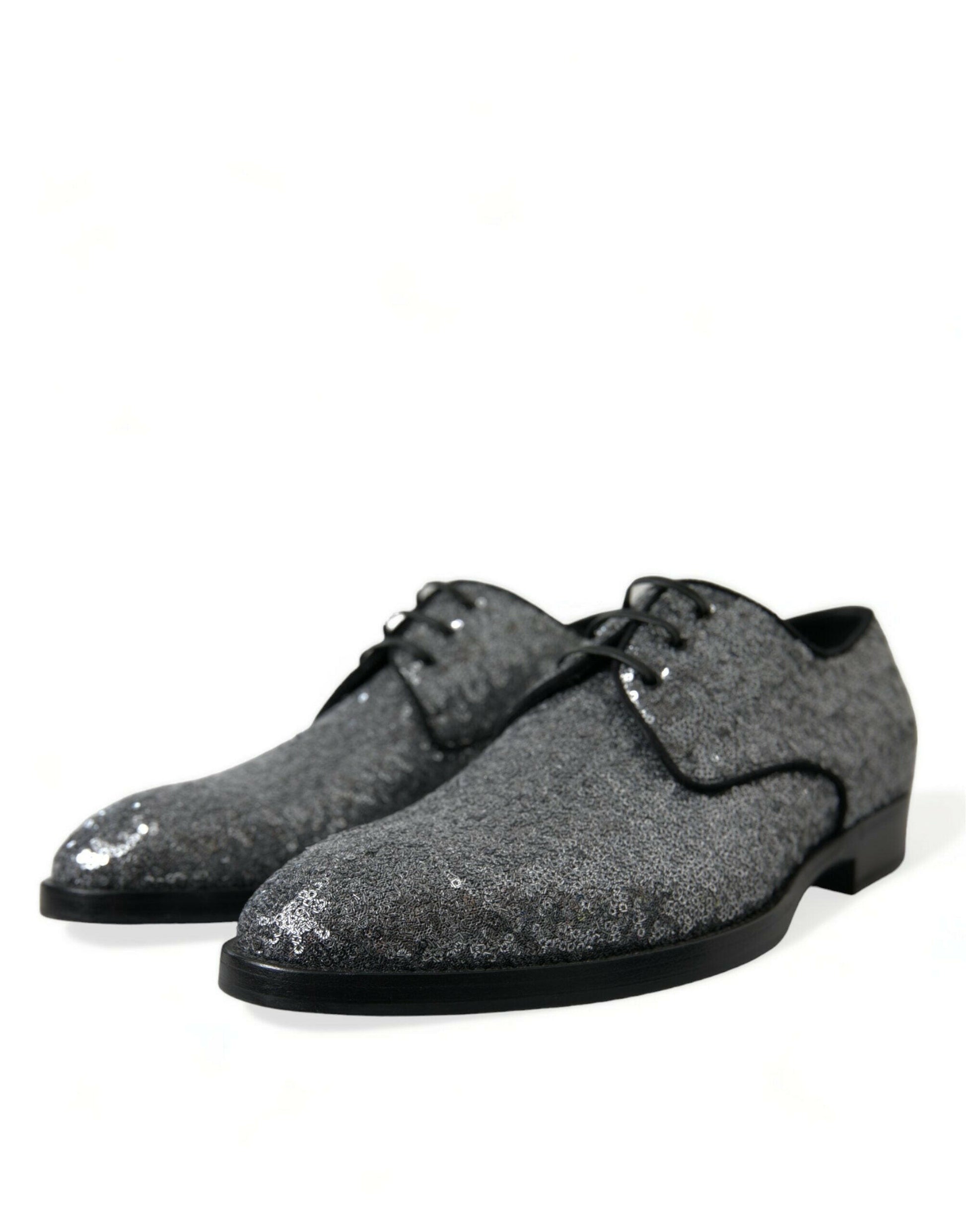 Dolce & Gabbana – Silberne Derby-Schnürschuhe mit Pailletten für Herren