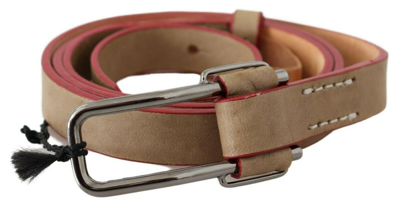 Costume National Beigefarbener Ledergürtel mit silberner Logoschnalle