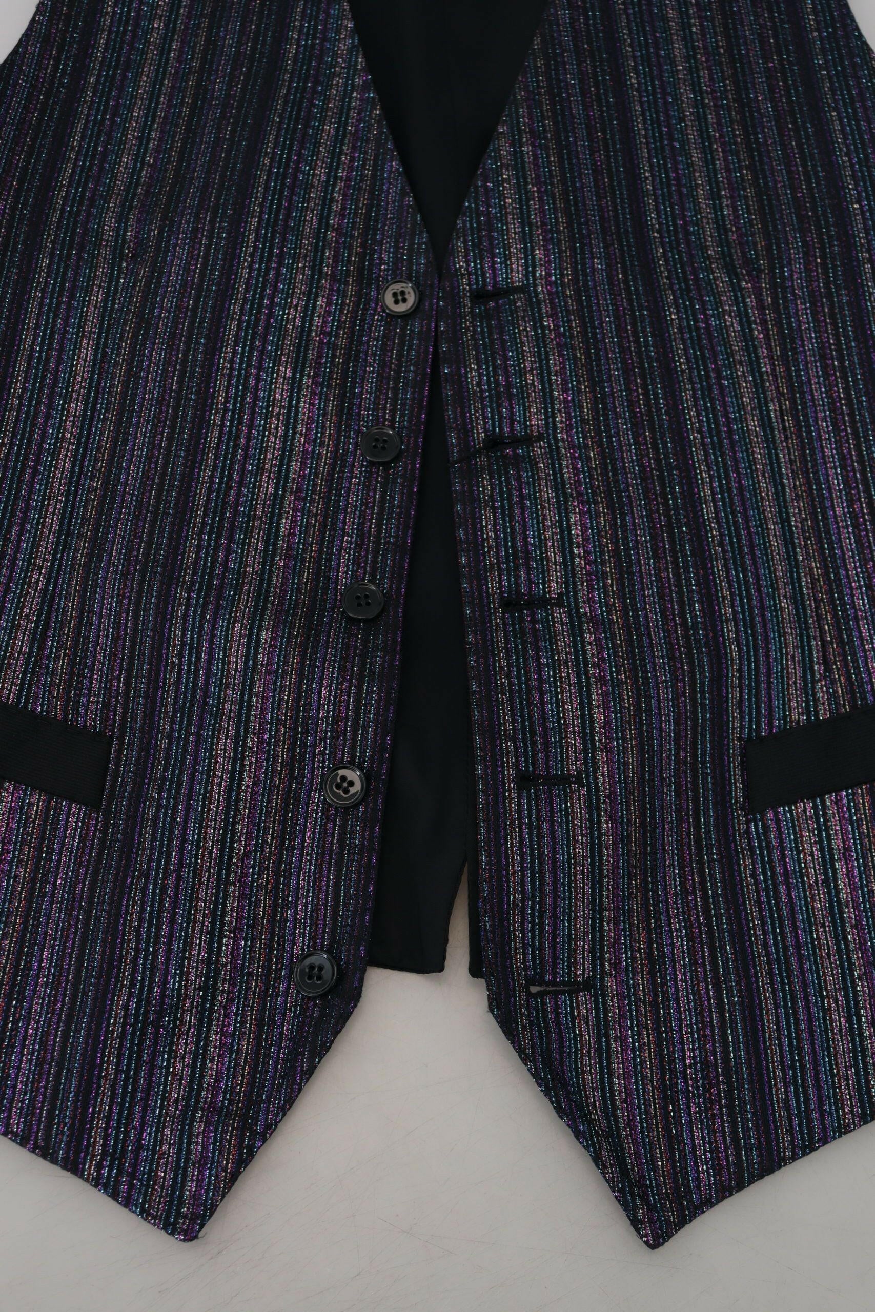 Absolut umwerfend, 100 % authentisch, brandneu mit Etikett, einreihige Weste von Dolce & Gabbana. Farbe: Mehrfarbig Modell: Formelle Anzugweste Logodetails Hergestellt in Italien Material: 79 % Polyester, 15 % Seide, 6 % Metallfaser