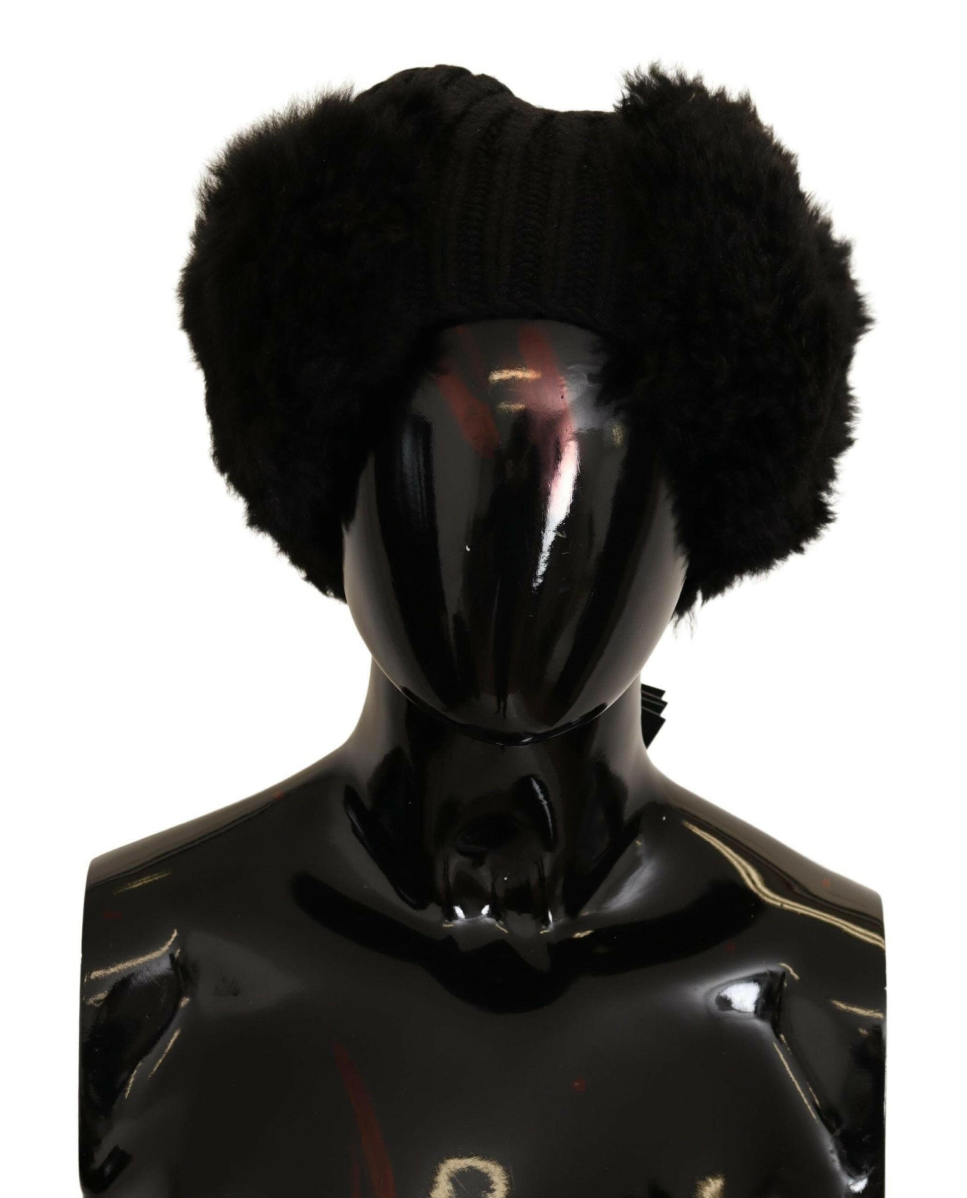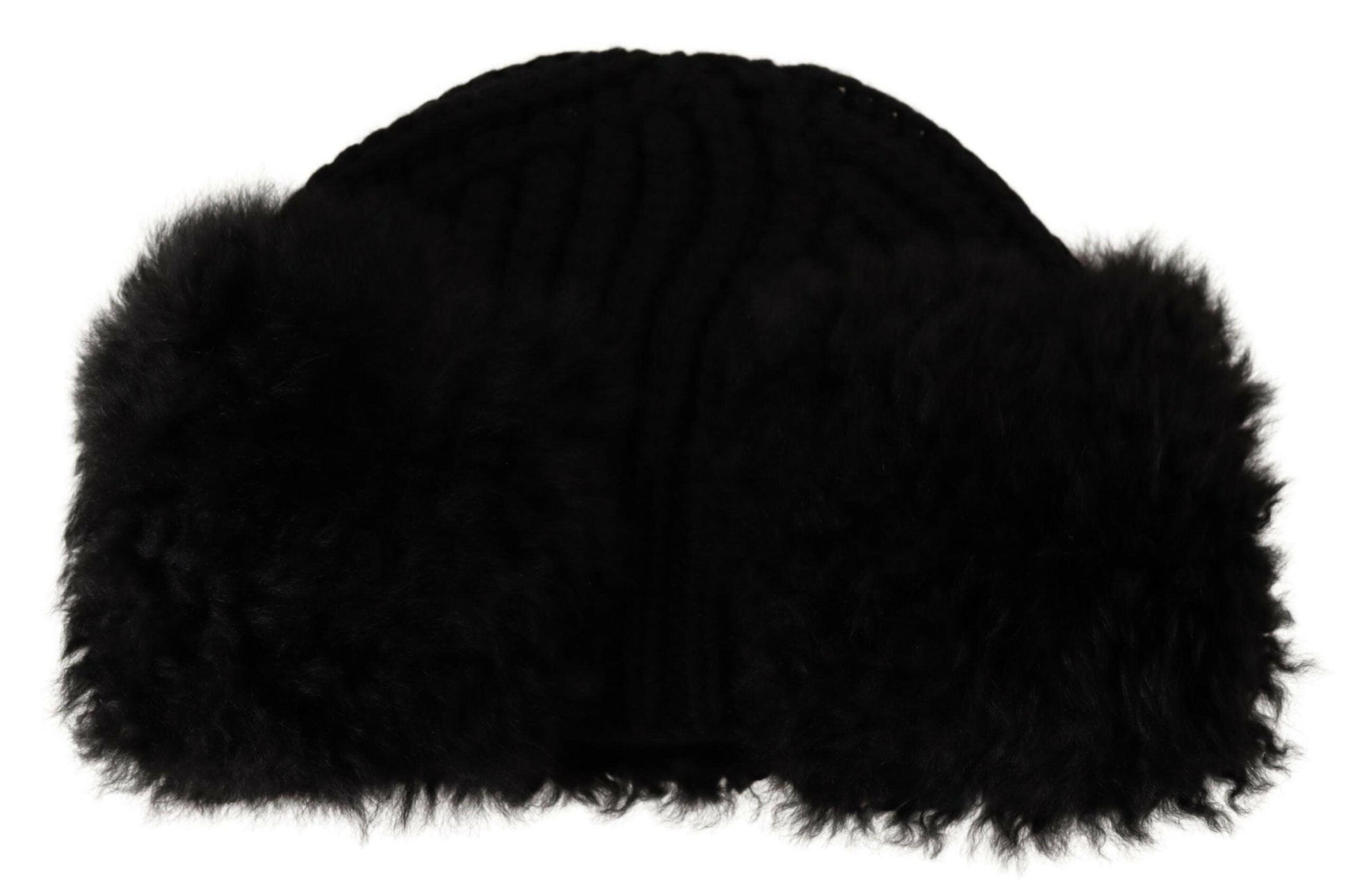 Dolce & Gabbana Black Cashmere Fur Women Beanie Women Hat