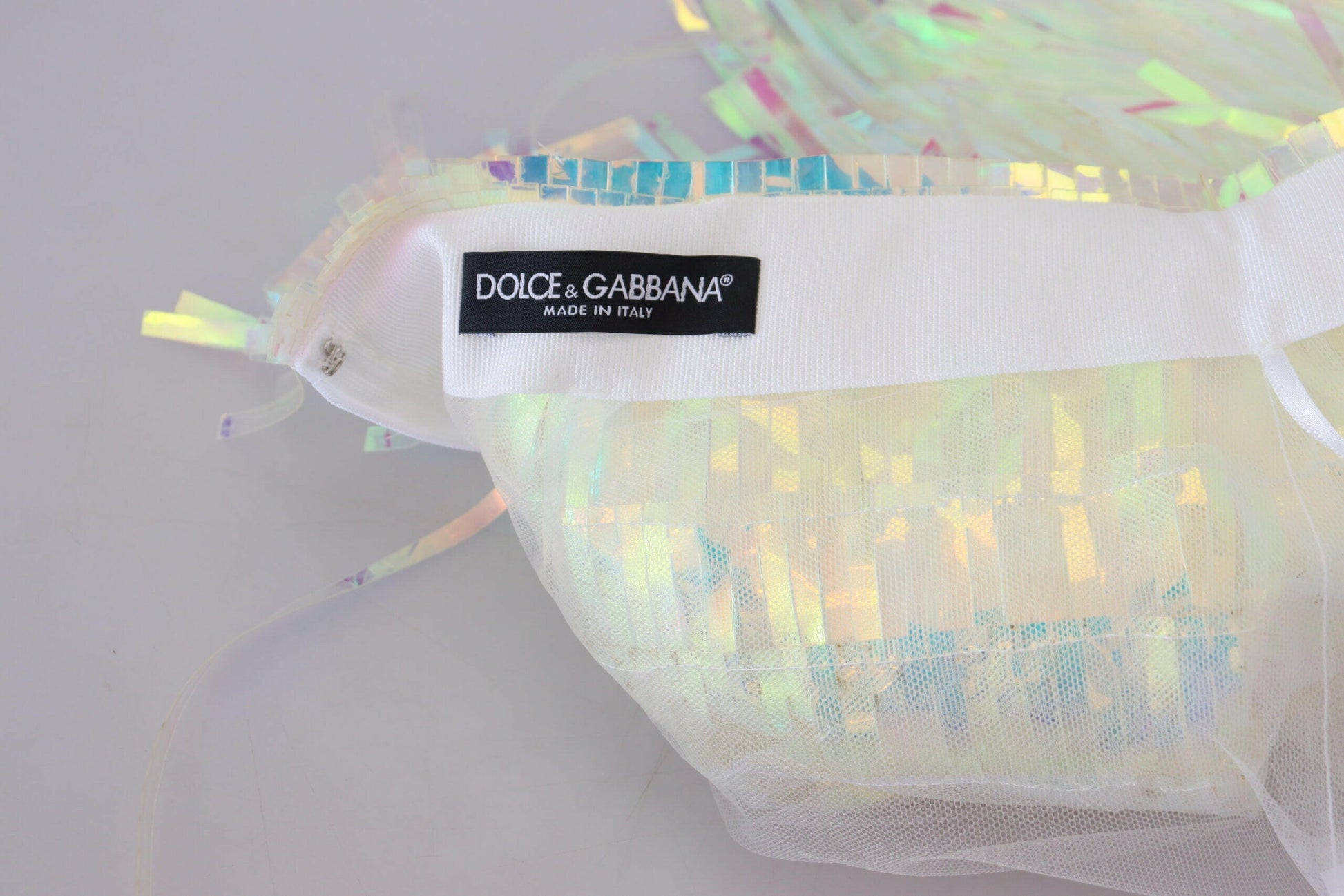 Gorgeous brand new with tags, 100% Authentic Dolce & Gabbana skirt is designed with tiers of iridescent fringe that appear to change colors as they catch the light, making it a striking option for parties.