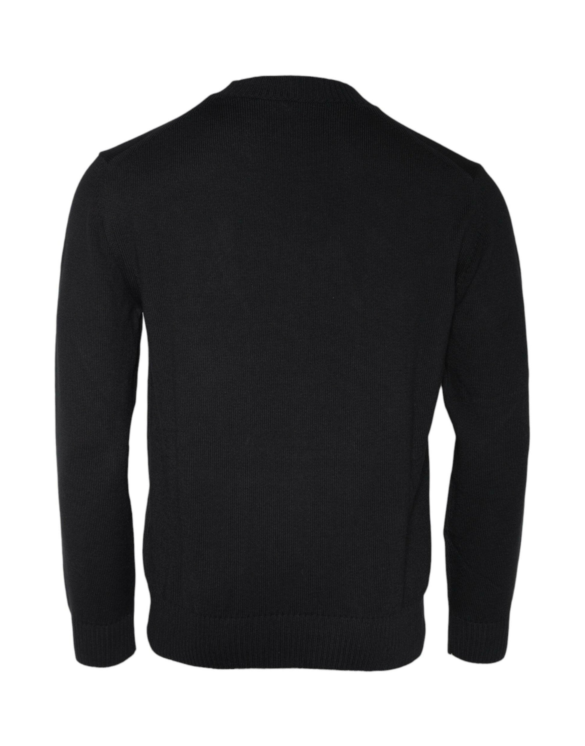Versace Black Medusa Embroidery Crew Neck Pullover Sweater