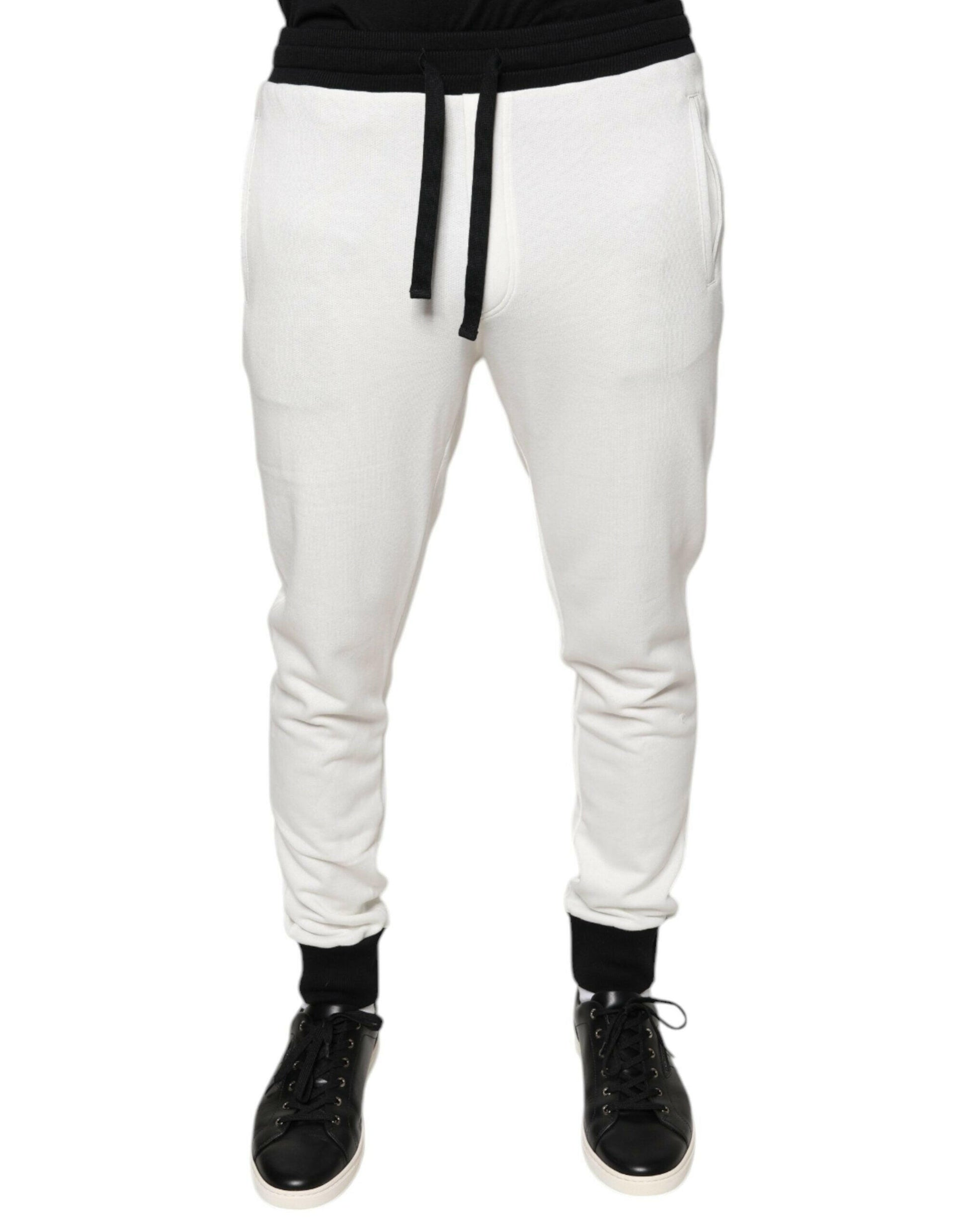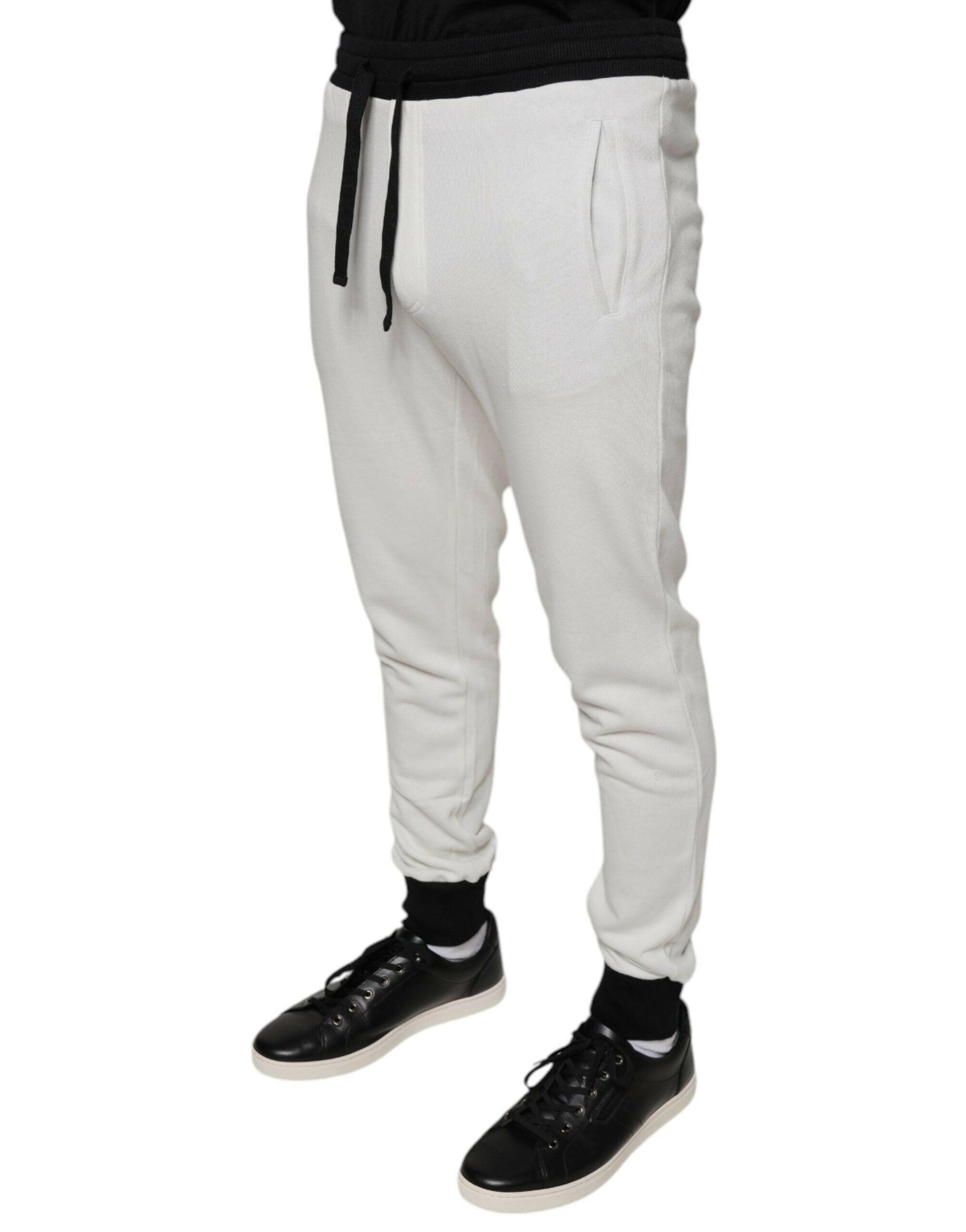 Dolce & Gabbana White Cotton Slim Men Jogger Sweatpants Pants