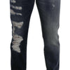Gorgeous, brand new with tags 100% Authentic Dolce & Gabbana tattered denim jeans crafted from cotton features a zipper and button closure.