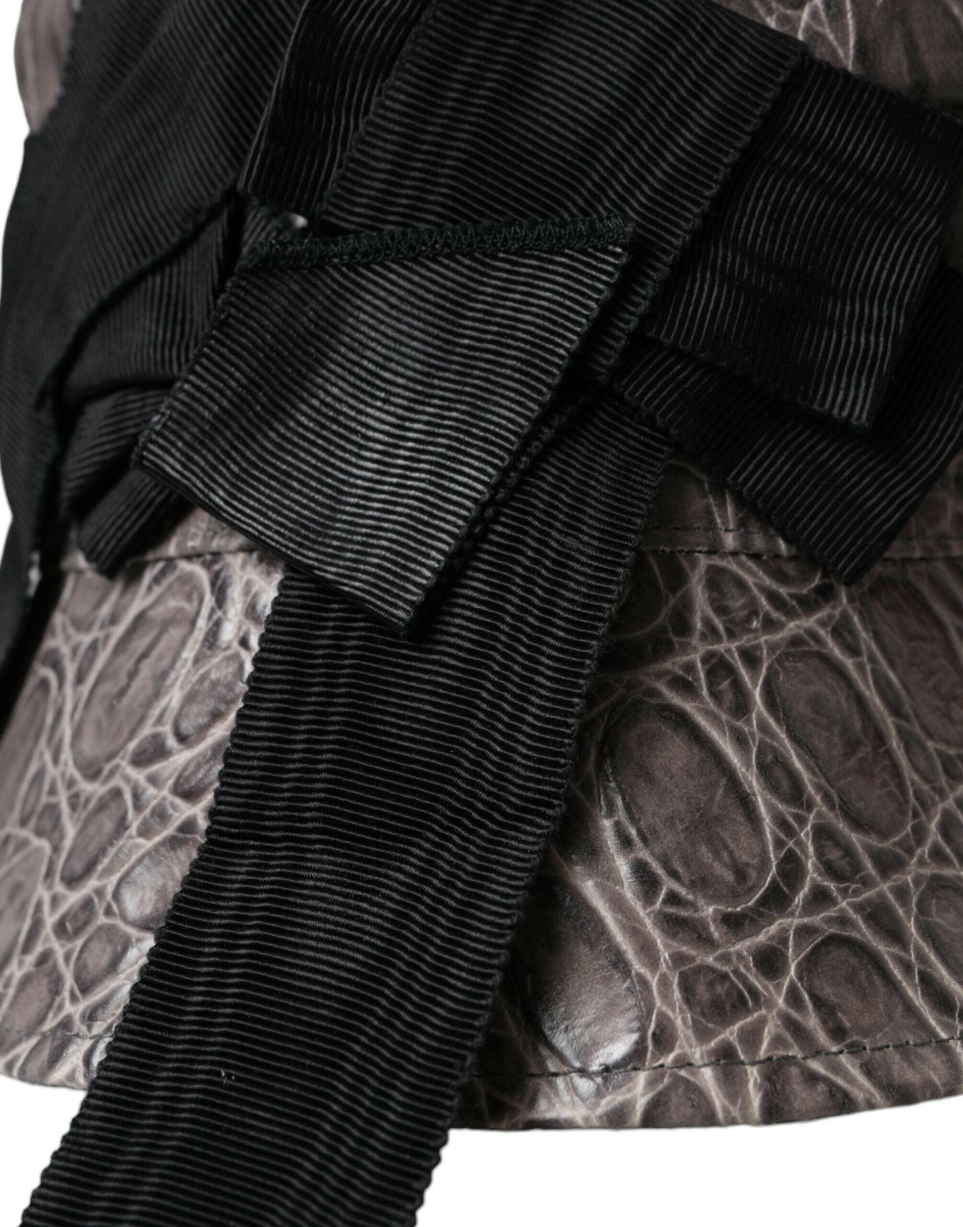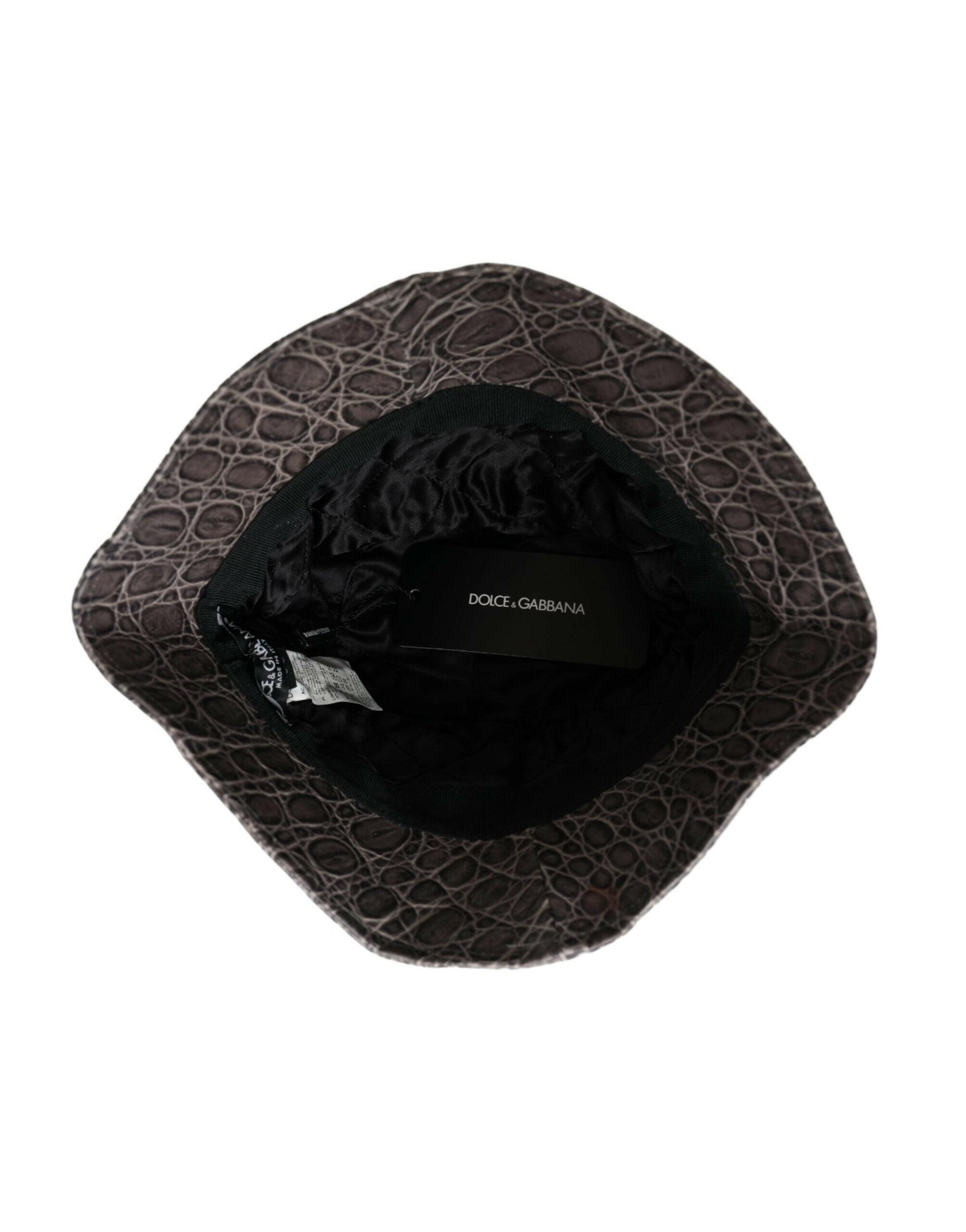 Dolce & Gabbana Black Gray Patterned Leather Bucket Hat