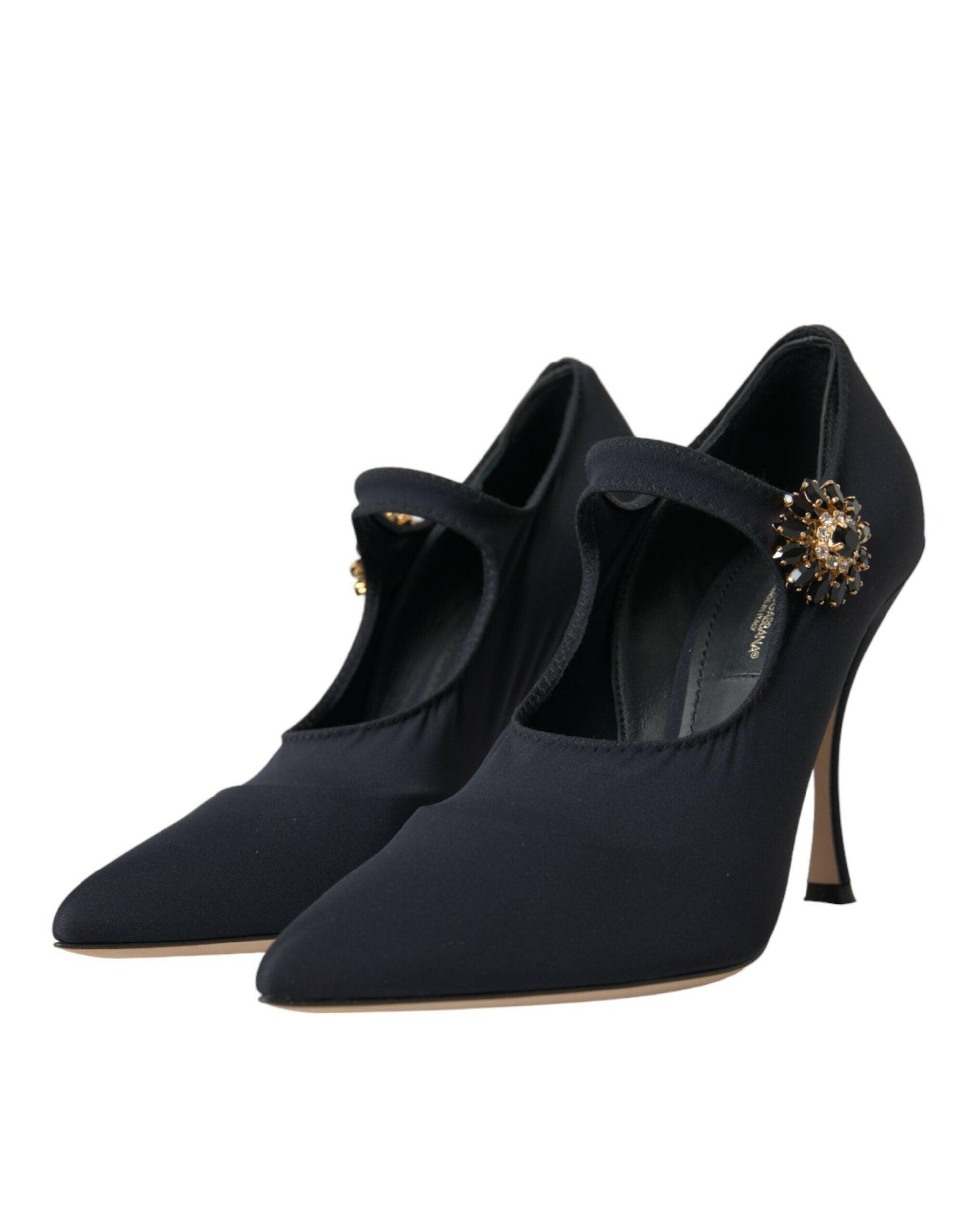 Dolce & Gabbana Black Mary Jane Jersey Crystal Pumps Shoes