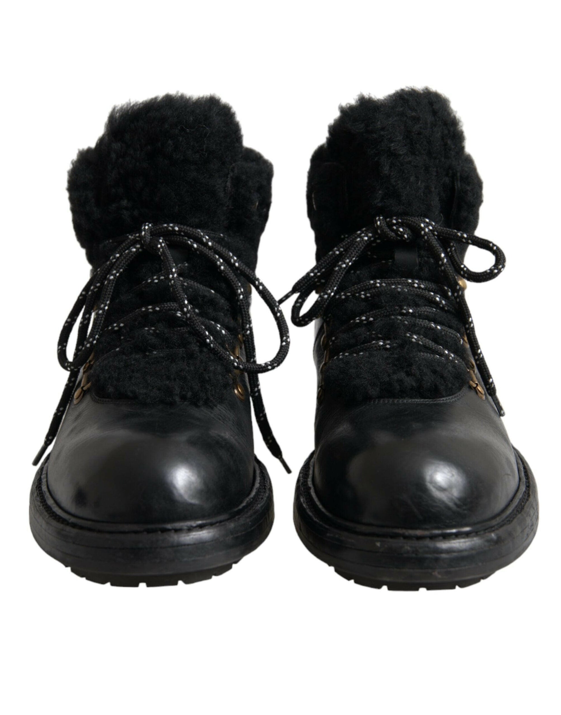 Dolce & Gabbana Black Leather Bernini Shearling Boots Shoes