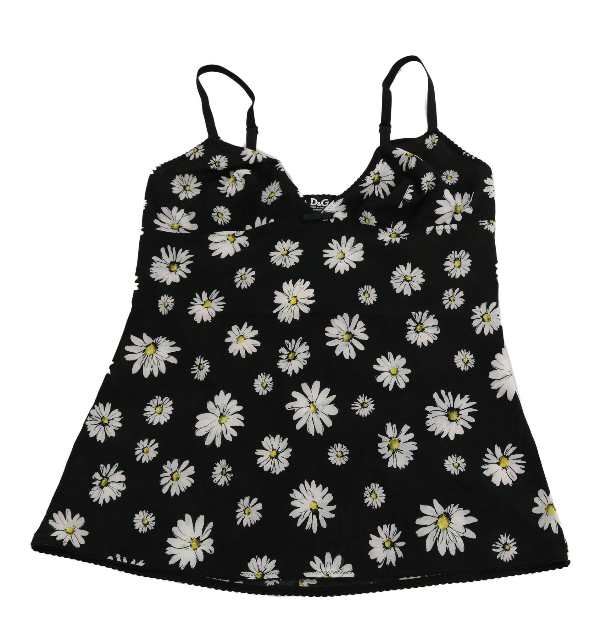 Dolce & Gabbana Black Daisy Print Dress Lingerie Chemisole