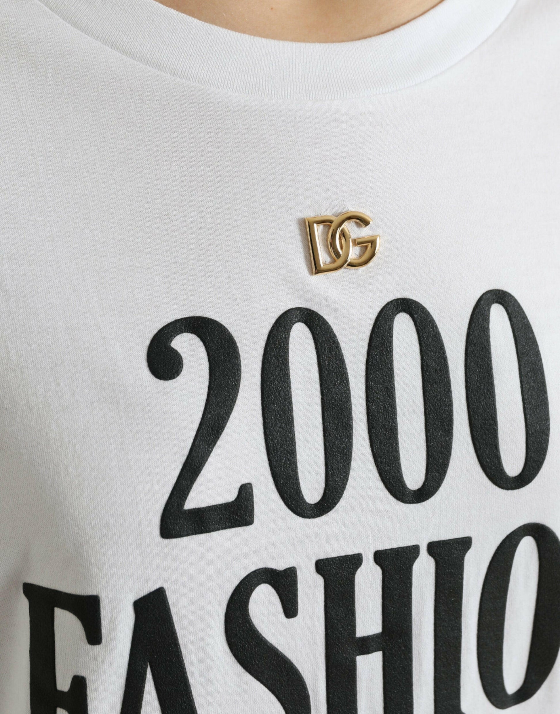 Dolce & Gabbana White Slogan Print Lacing Detailed T-shirt