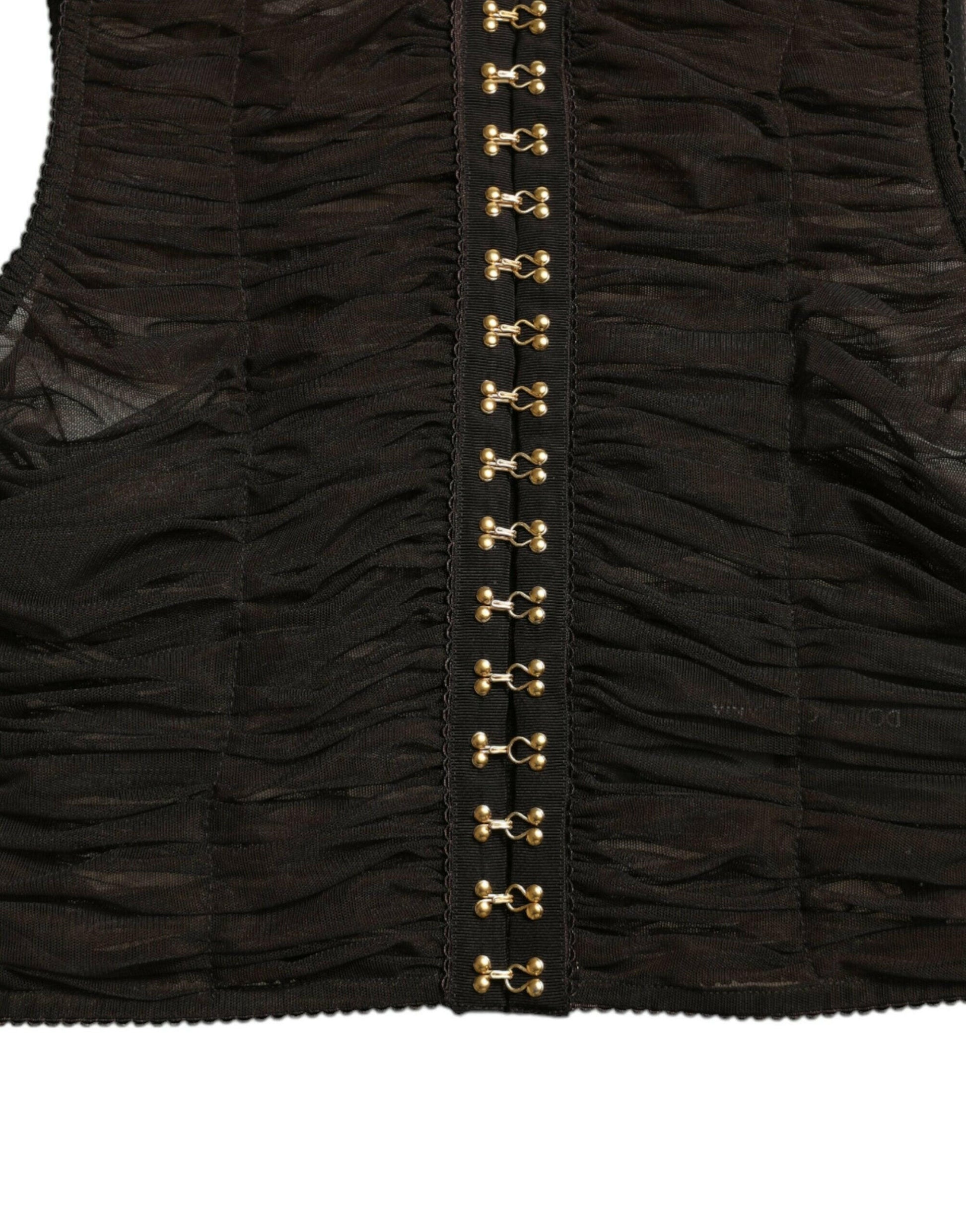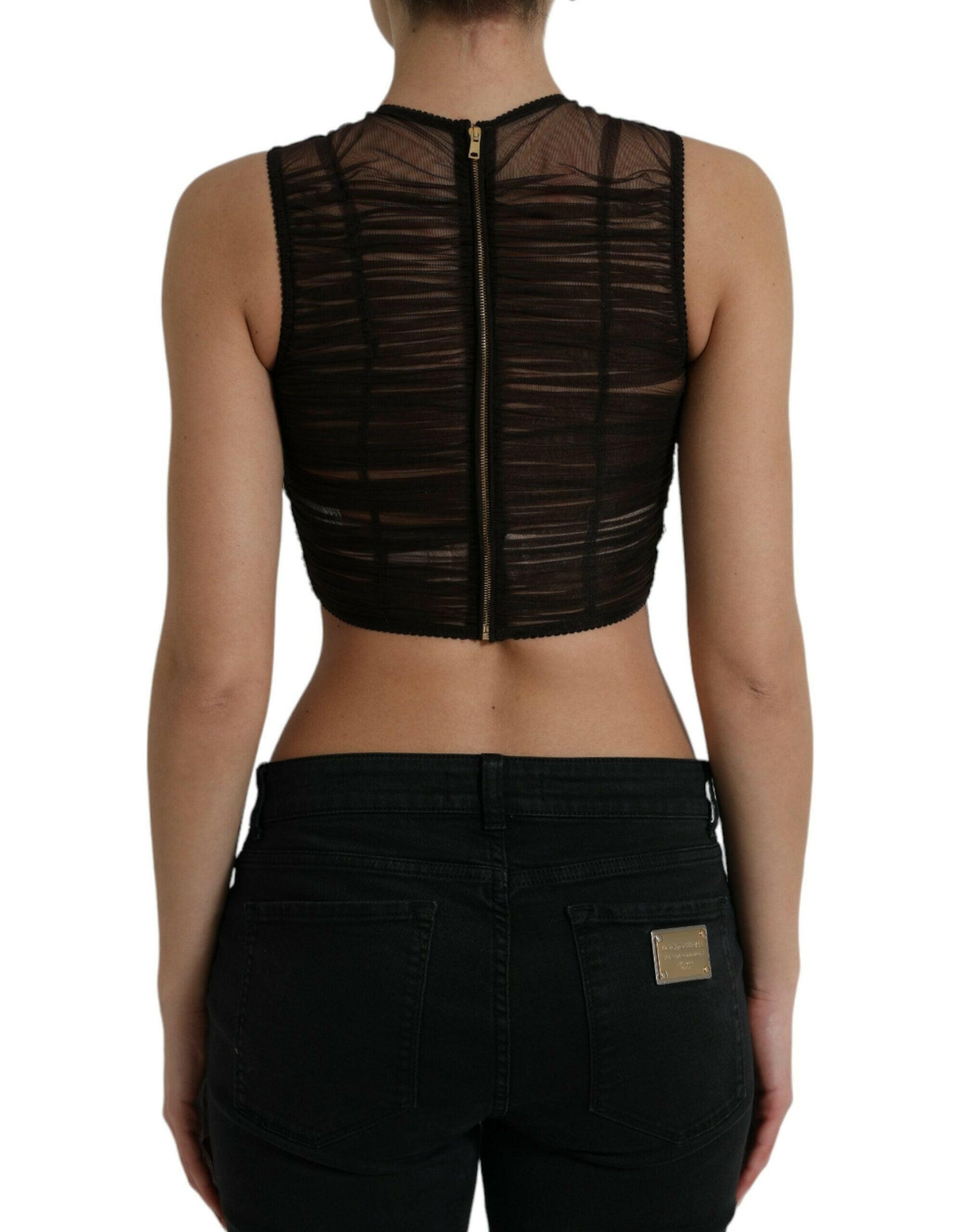 Gorgeous brand new with tags, 100% Authentic Dolce & Gabbana embellished sleeveless cropped top. Model: Cropped top Material: 72% Nylon 13% Elastane 6% Viscose 5% Polyester 4% Cotton Lining: 79% Nylon 15% Elastane 6% Polyester Colour: Brown Back zipper closure Logo details Made in Italy
