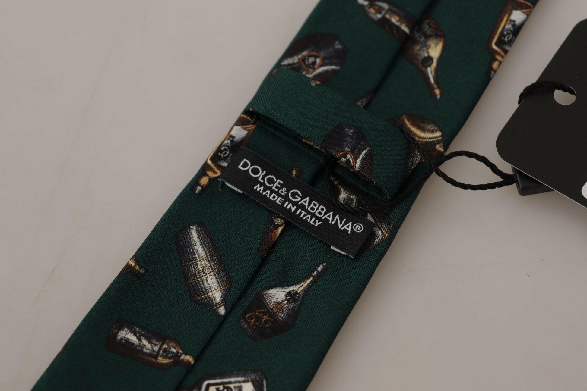 Absolutely stunning, 100% Authentic, brand new with tags Dolce & Gabbana exclusive tie. Color: Black Bottle Print Model: Tied Material: 100% Silk Adjustable length neck strap, one size Made In Italy Width: 6cm