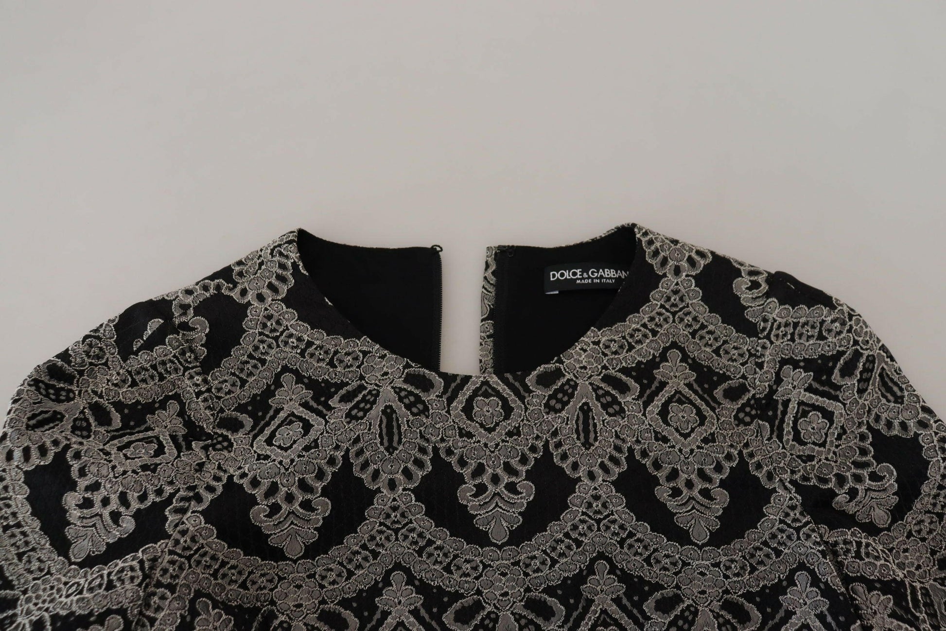 Dolce & Gabbana Black Gray Jacquard Sheath Bodycon Dress