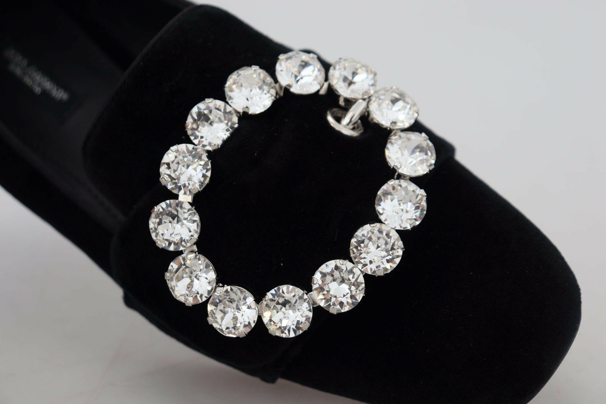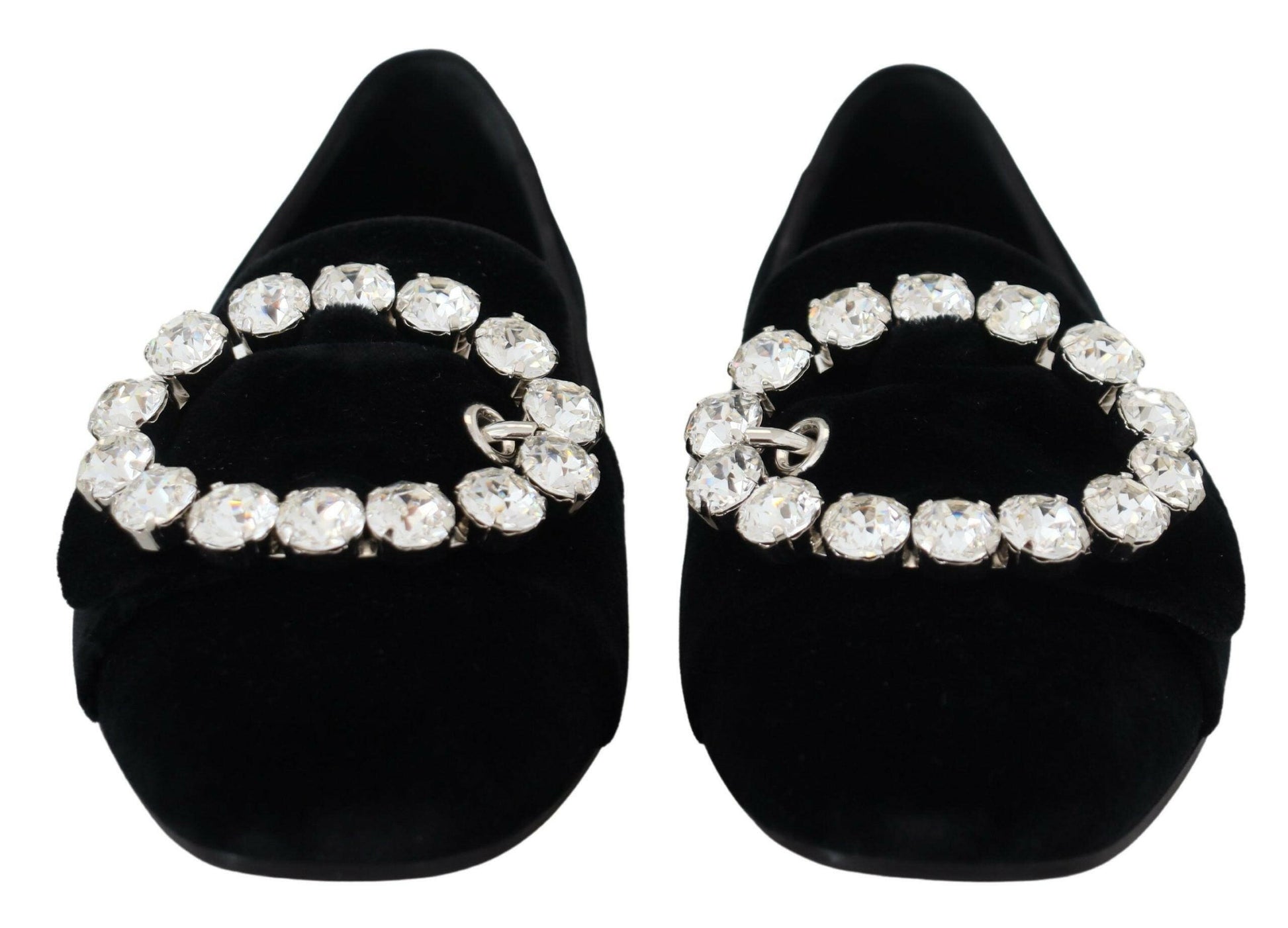 Dolce & Gabbana Black Velvet Crystals Loafers Flats Shoes