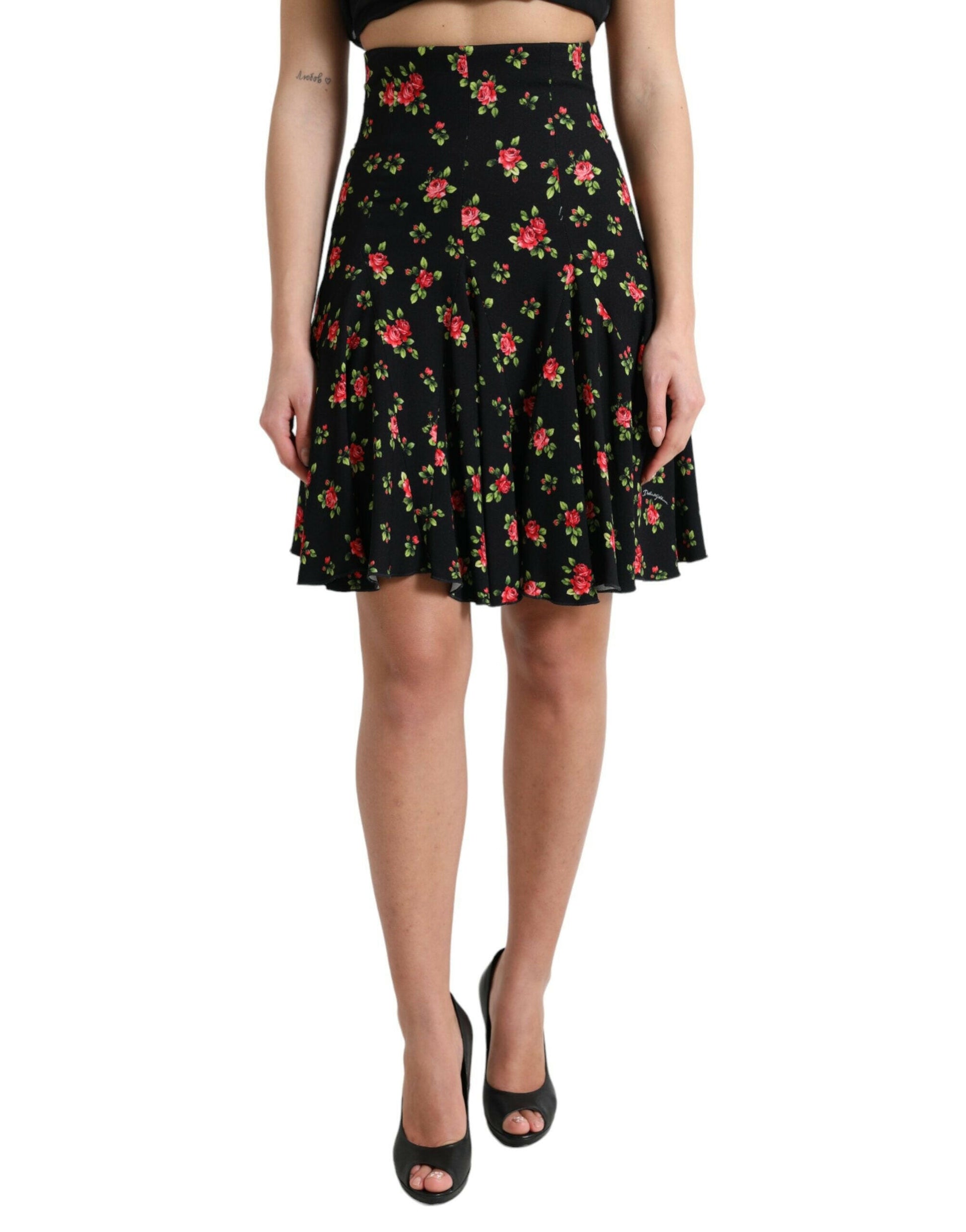 Découvrez l'élégance italienne par excellence avec cette superbe mini-jupe trapèze fleurie signée Dolce & Gabbana . Parfaite pour les femmes à la pointe de la mode, cette jupe taille haute arbore un magnifique fond noir orné d'un imprimé rose éclatant. Confectionnée avec soin dans un mélange de matières à la fois confortable et luxueux, elle est doublée de soie stretch pour un toucher délicat. Cette jupe incarne le style sophistiqué emblématique de la marque Dolce & Gabbana. Idéale pour faire sensation lors de tous les événements, elle fera tourner les têtes et sublimera votre garde-robe.