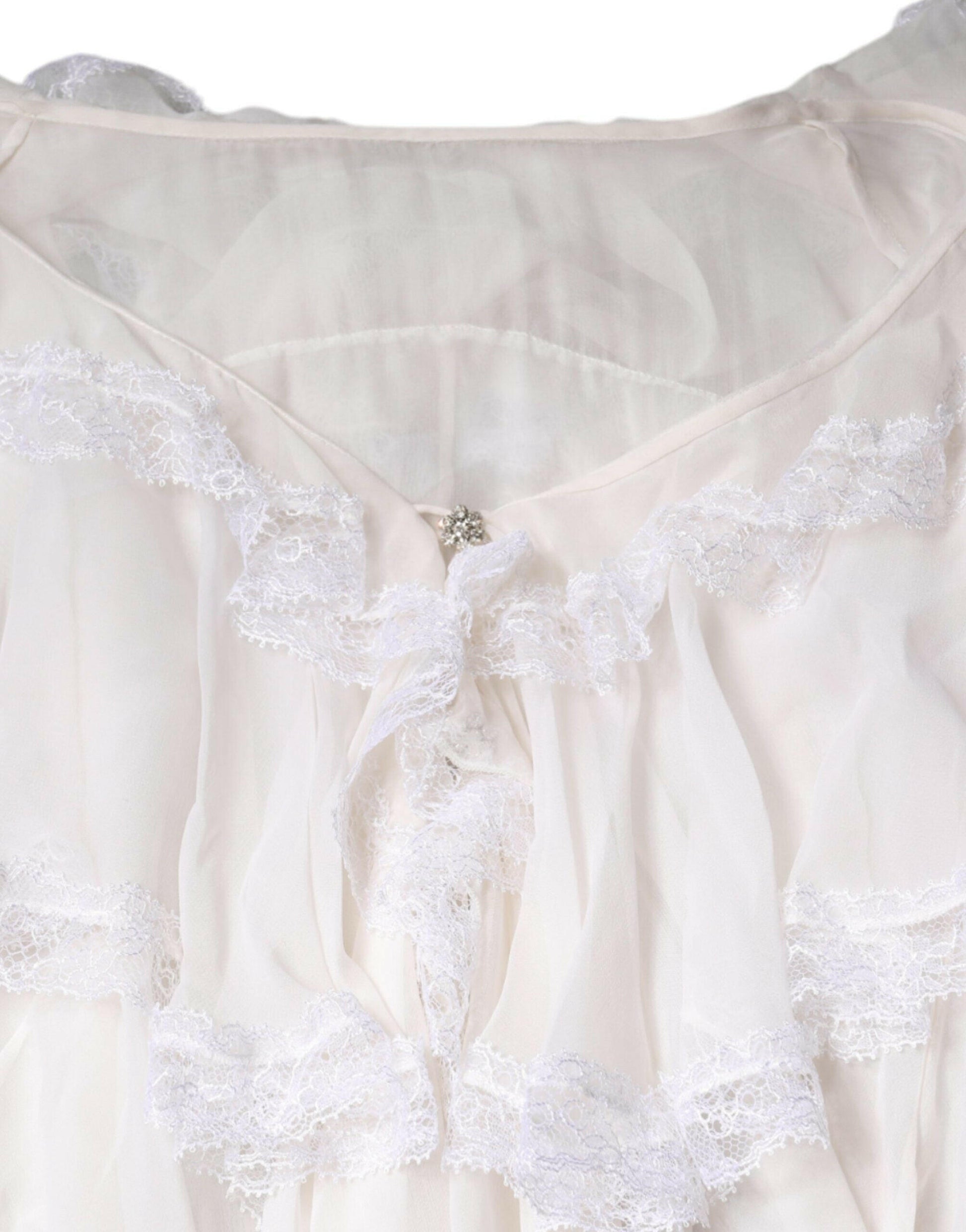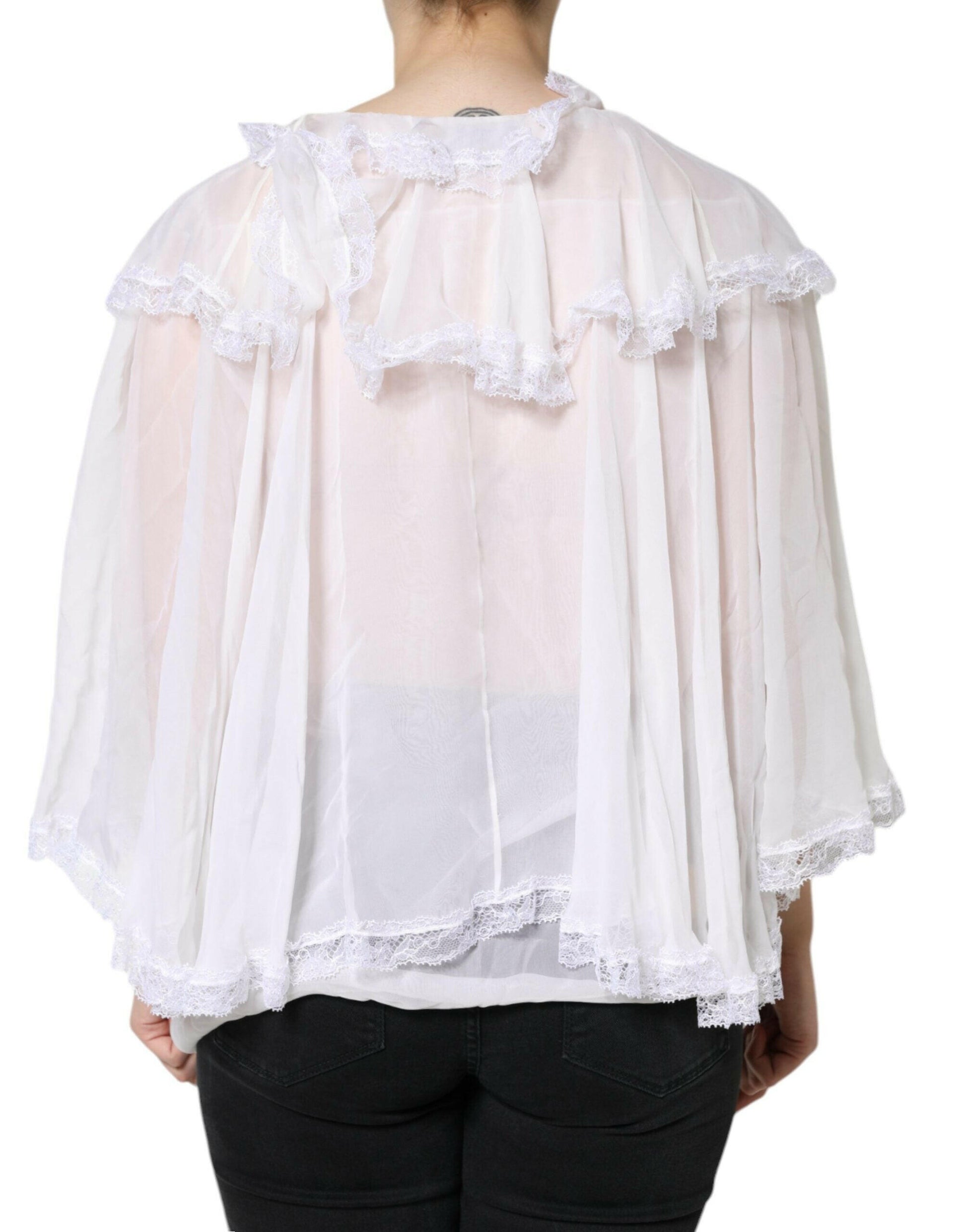 Chemisier à manches longues en dentelle blanche à volants Dolce & Gabbana