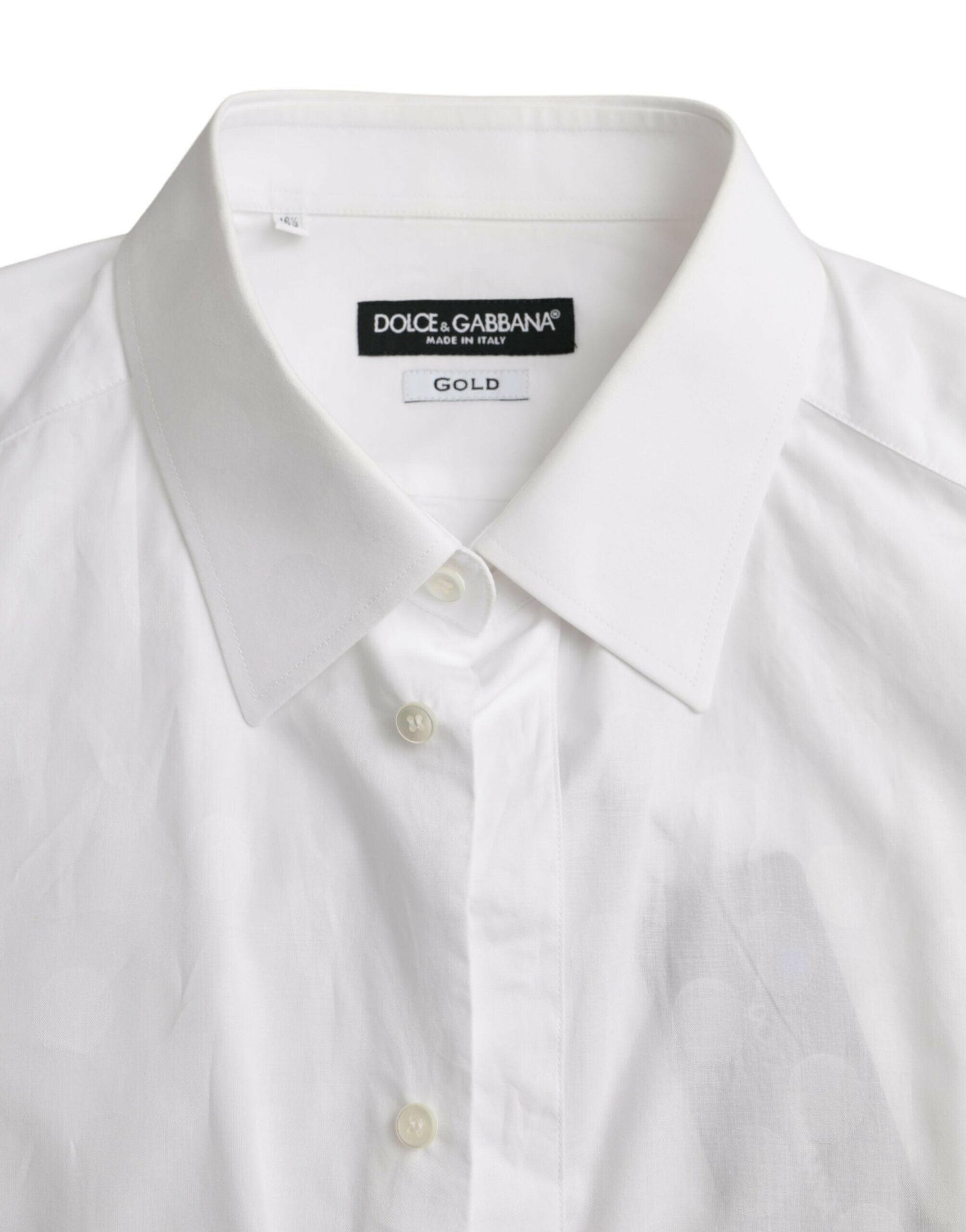 Superbe chemise Dolce & Gabbana en coton doré, 100 % authentique, neuve avec étiquettes. Ce modèle présente un col classique, des manches longues et une fermeture boutonnée.