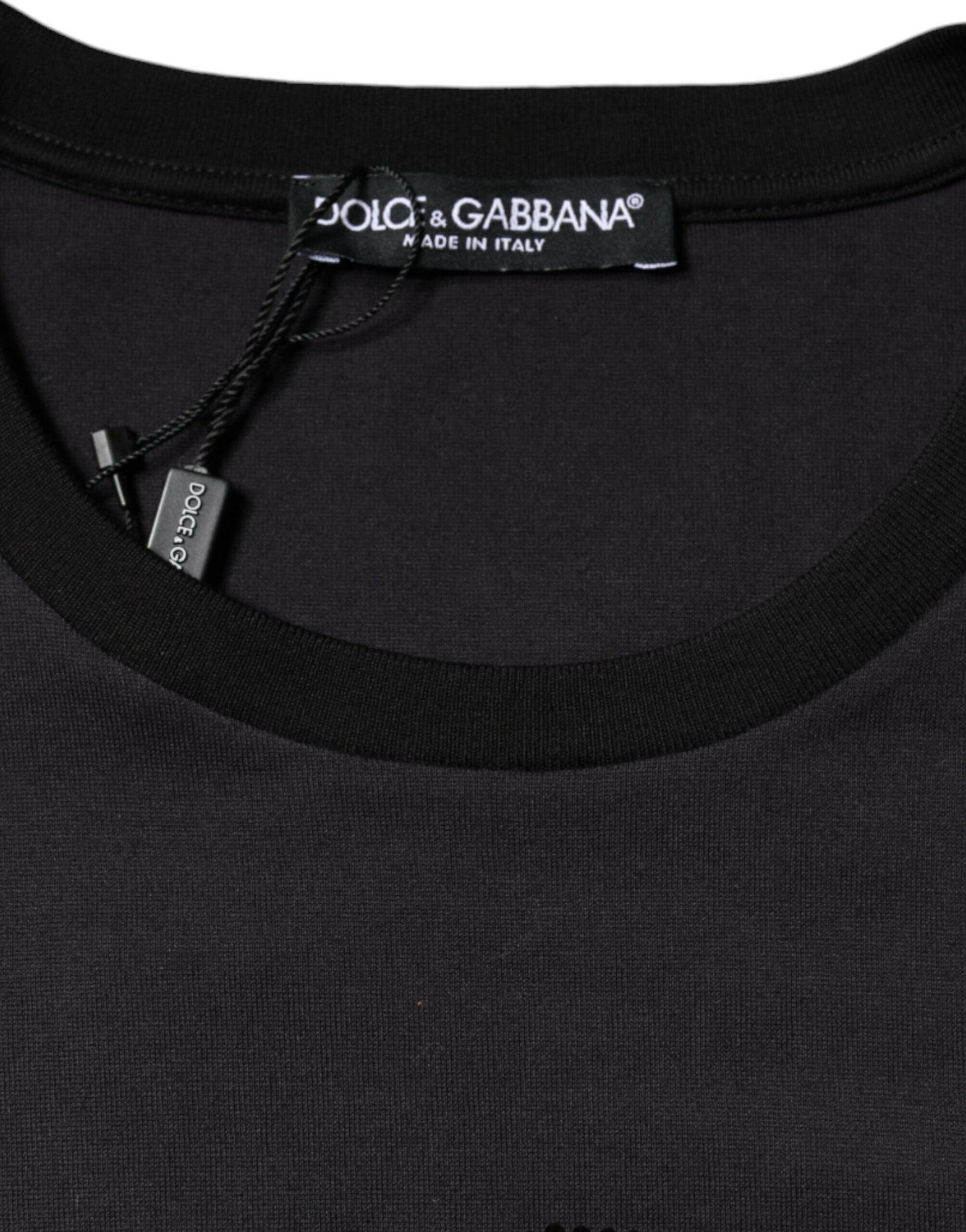 T-shirt col rond en coton noir avec logo imprimé Dolce & Gabbana