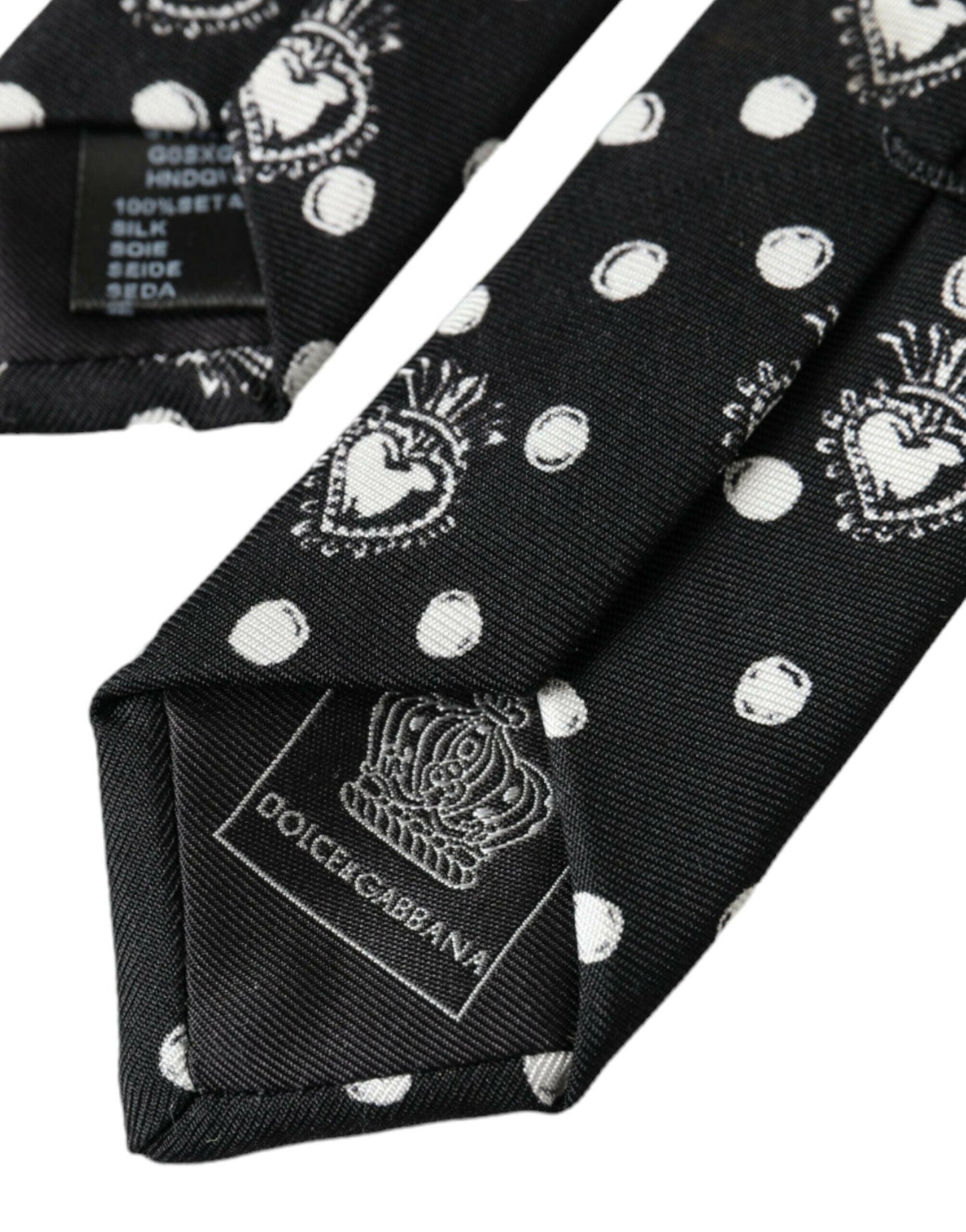 Cravate ajustable à pois et cœur noir Dolce & Gabbana