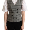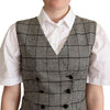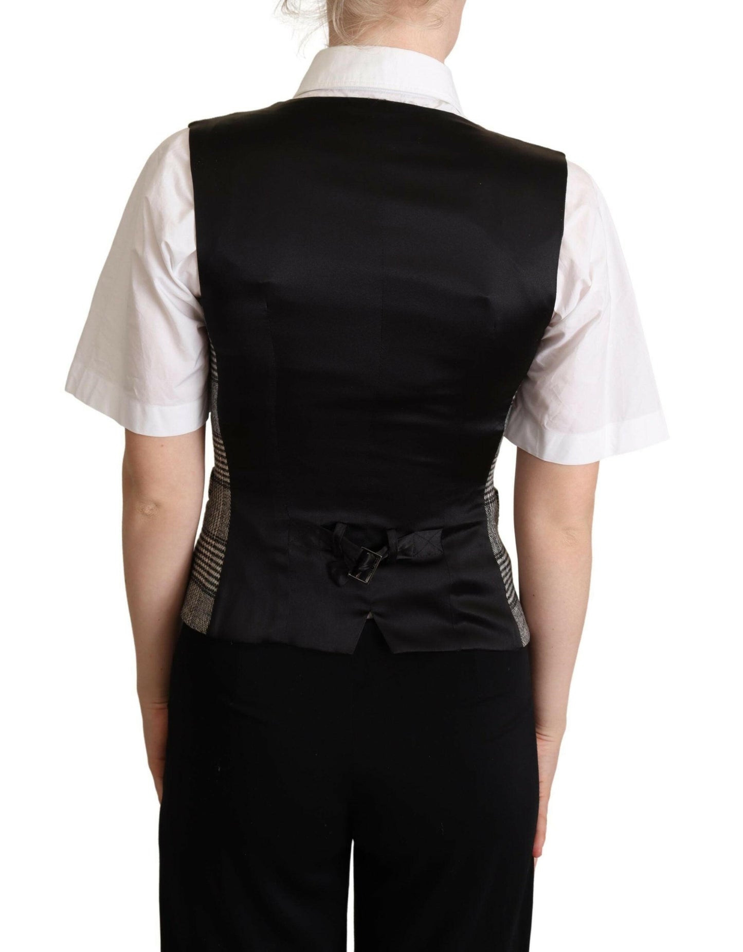 Dolce & Gabbana Élégant gilet en soie mélangée grise à carreaux