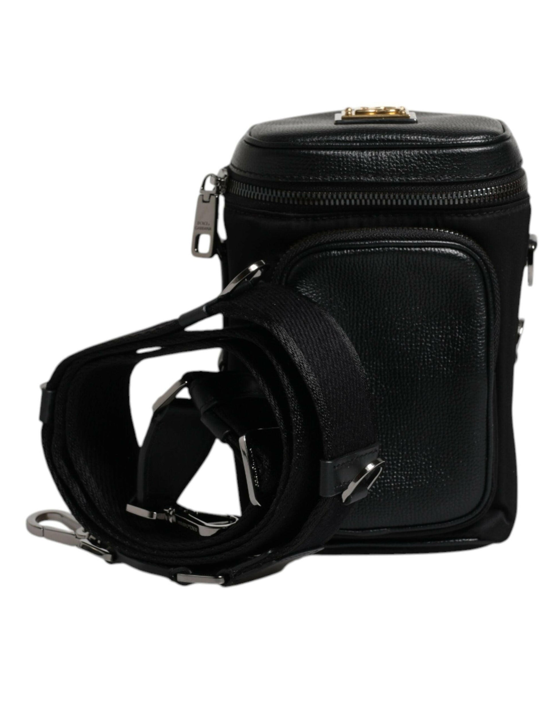 Sac bandoulière en cuir noir avec logo Dolce & Gabbana