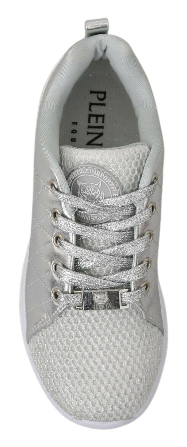 Superbes, neuves et avec étiquettes, découvrez l'univers luxueux de Philipp Plein avec ces superbes baskets Gisella. Conçues pour les fashionistas, ces baskets respirent la sophistication avec leur couleur argentée accrocheuse et leur design élégant. Parfait équilibre entre style et confort, leurs logos signature ajoutent une touche de luxe, ce qui en fait le choix idéal pour toute tenue tendance.