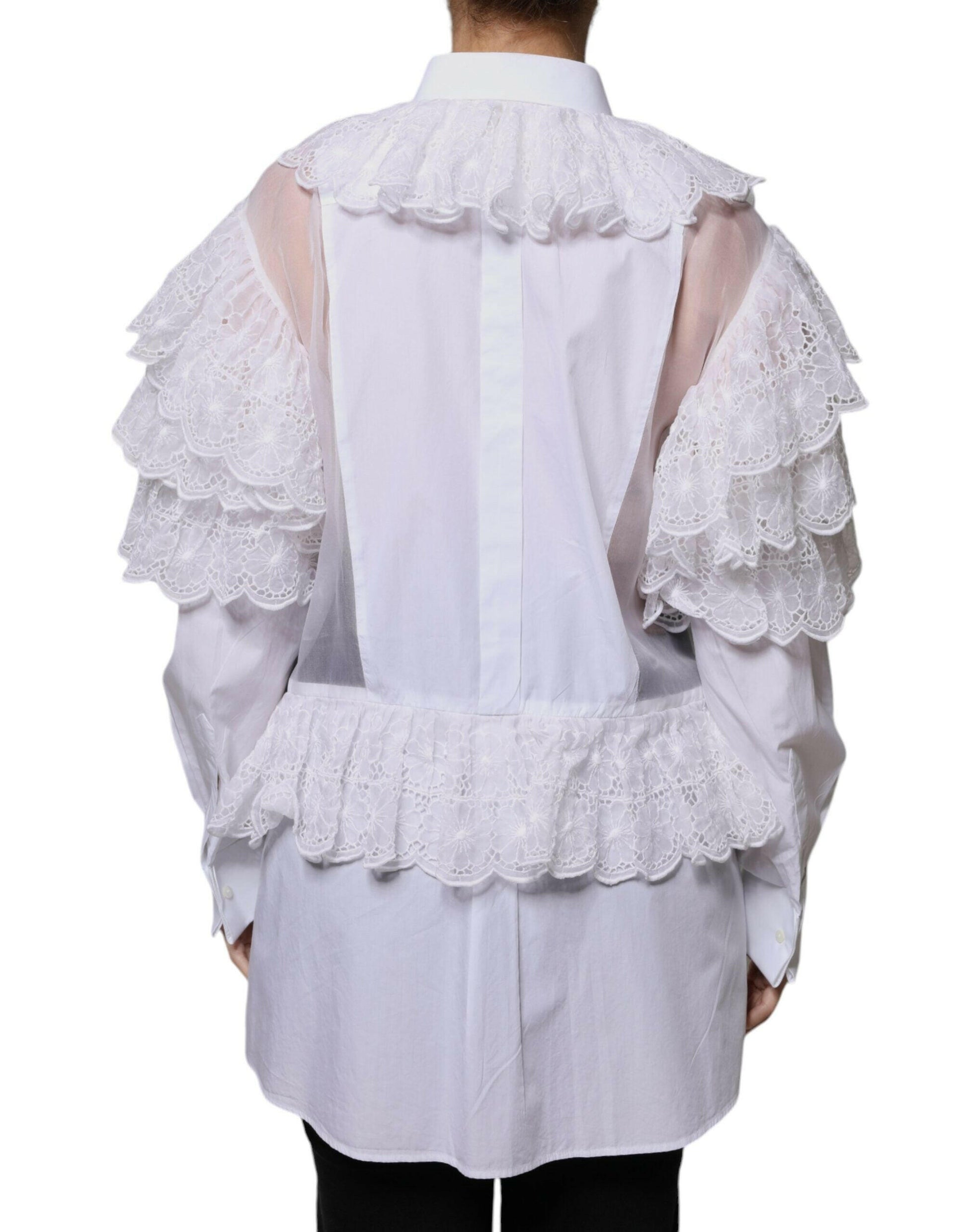 Superbe chemisier en popeline de coton Dolce & Gabbana 100 % authentique avec étiquettes, tout neuf et en organza incrusté.