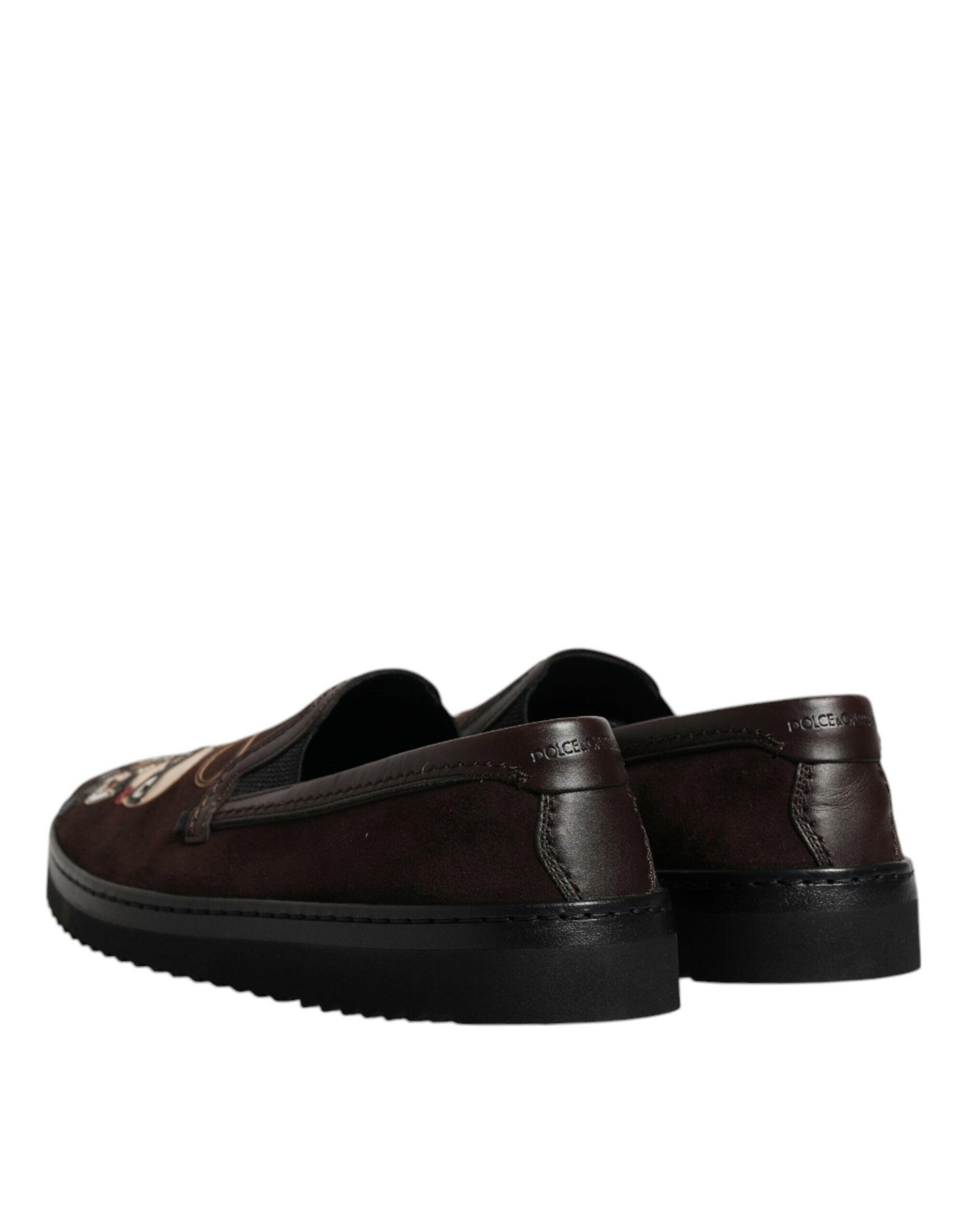 Chaussures plates à enfiler Dolce & Gabbana en daim marron DG Family