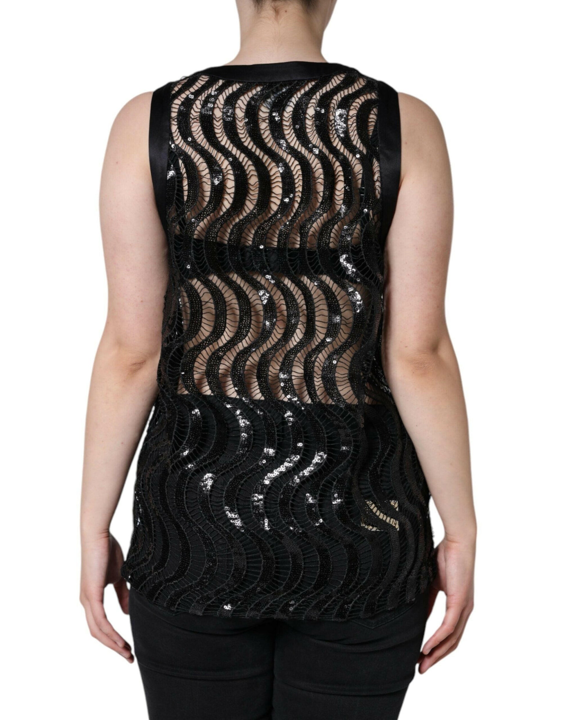 Chemisier débardeur sans manches à sequins noirs Dolce & Gabbana
