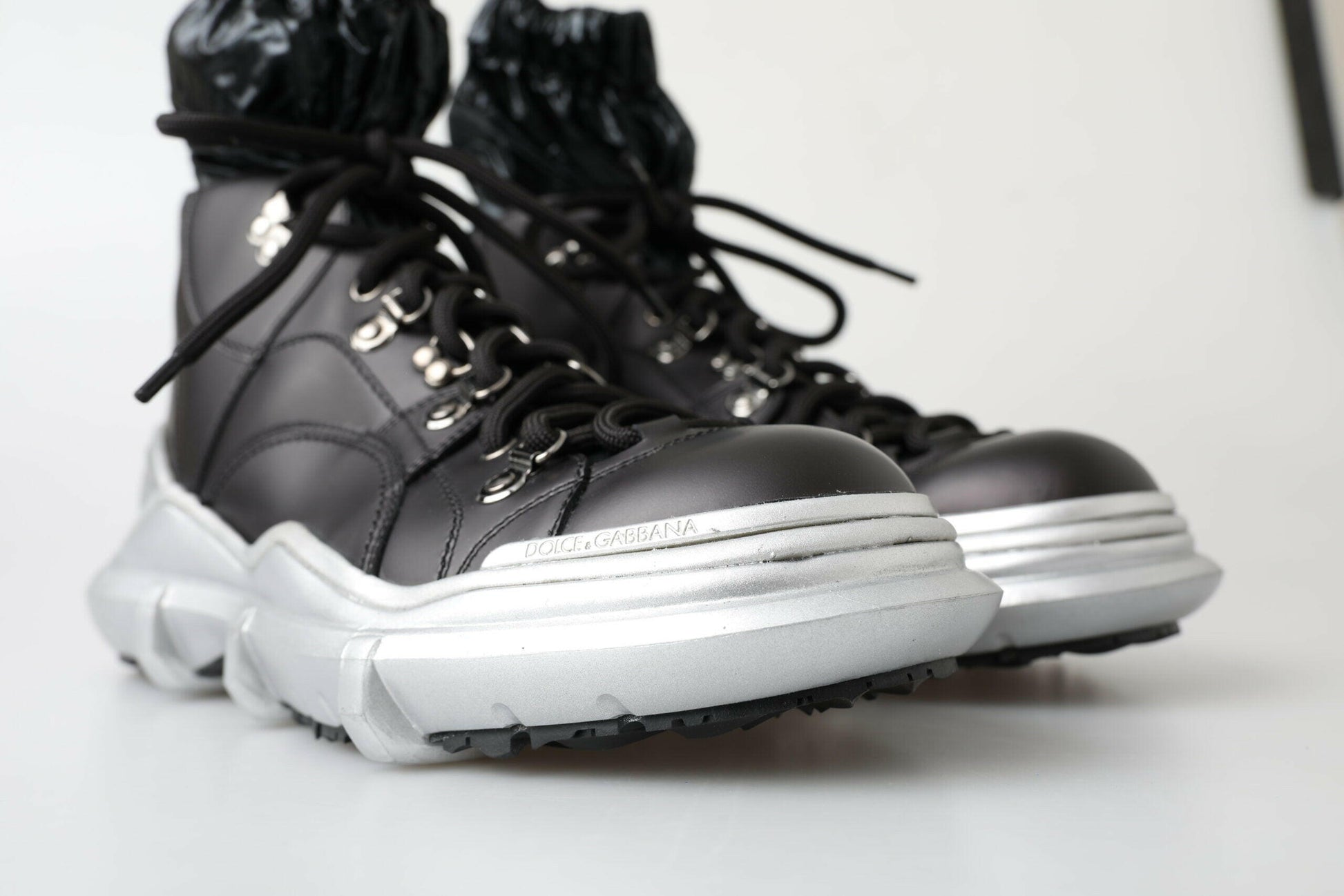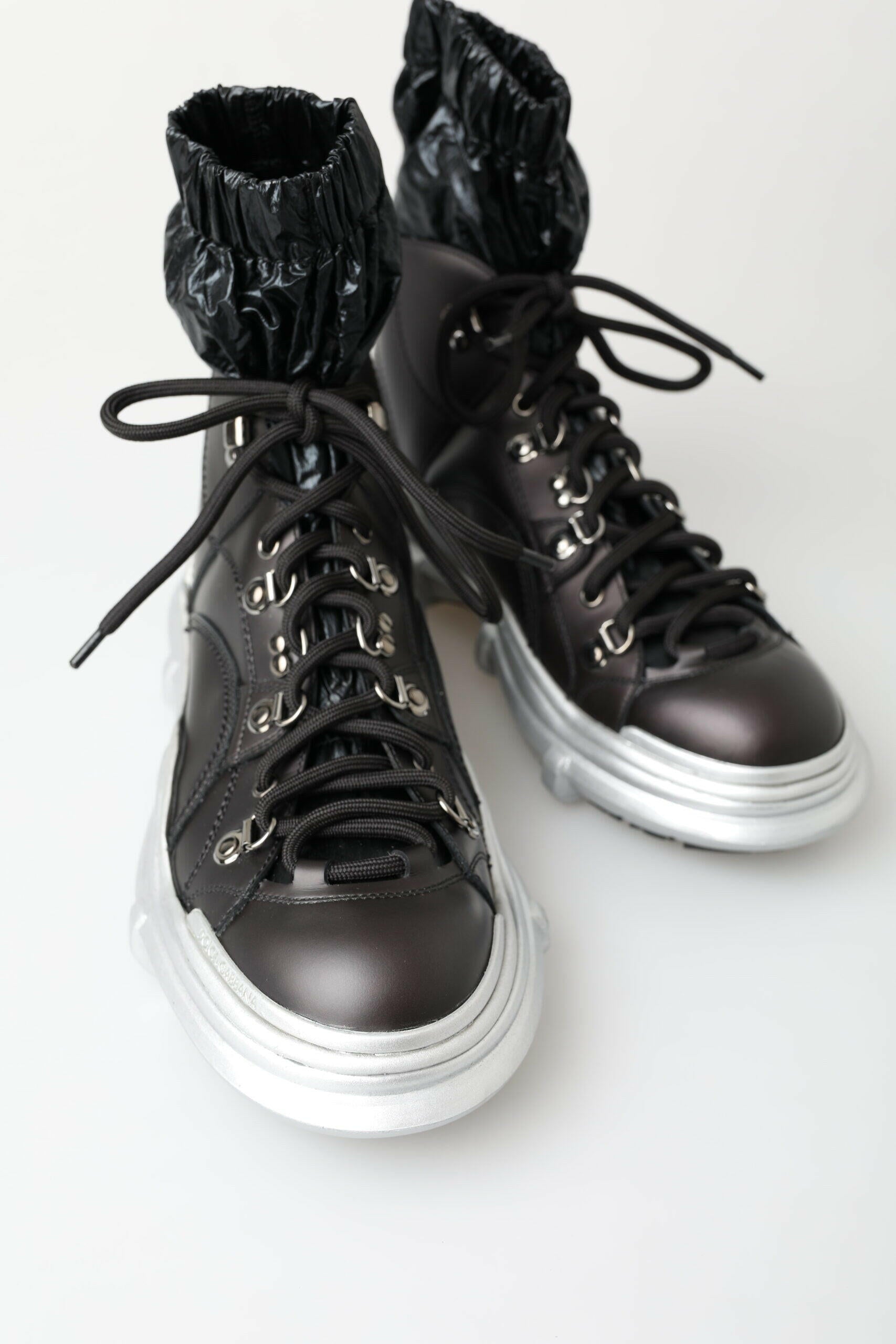 Adoptez le luxe et le style avec ces sublimes chaussures montantes, signées par la célèbre maison Dolce & Gabbana. Neuves avec étiquette, ces baskets pour homme incarnent l'exclusivité et un savoir-faire exceptionnel, parfaites pour les personnes avant-gardistes qui souhaitent s'affirmer. D'un noir sophistiqué, elles allient matériaux de qualité et logos discrets. Fabriquées en Italie, elles allient confort et style impeccable.