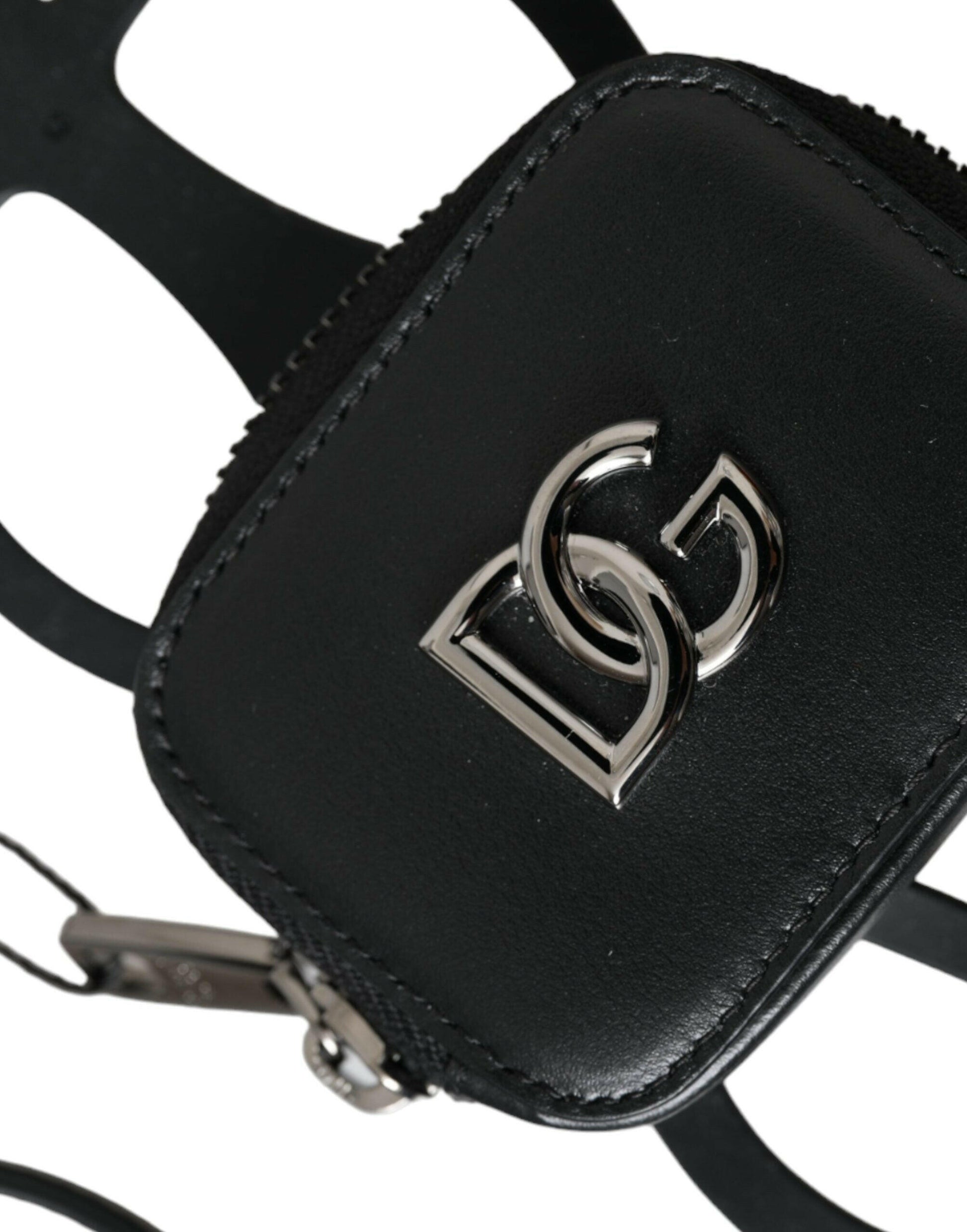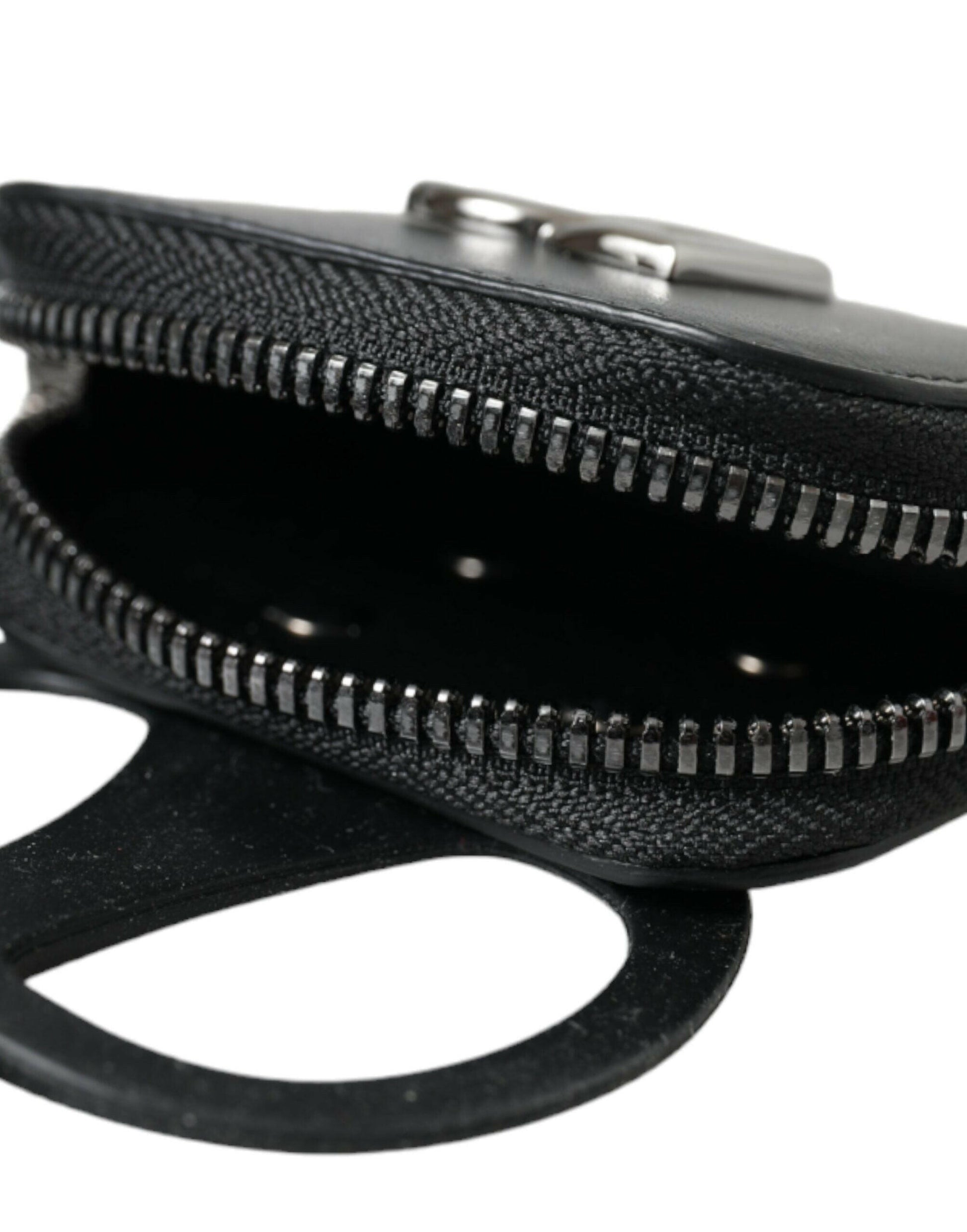Dolce & Gabbana Black Calfskin Leather DG Logo Coin Purse Lanyard Wallet