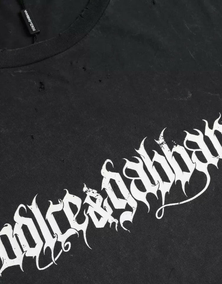 Dolce & Gabbana Black Graphic Printed Cotton Short Sleeves T-shirt