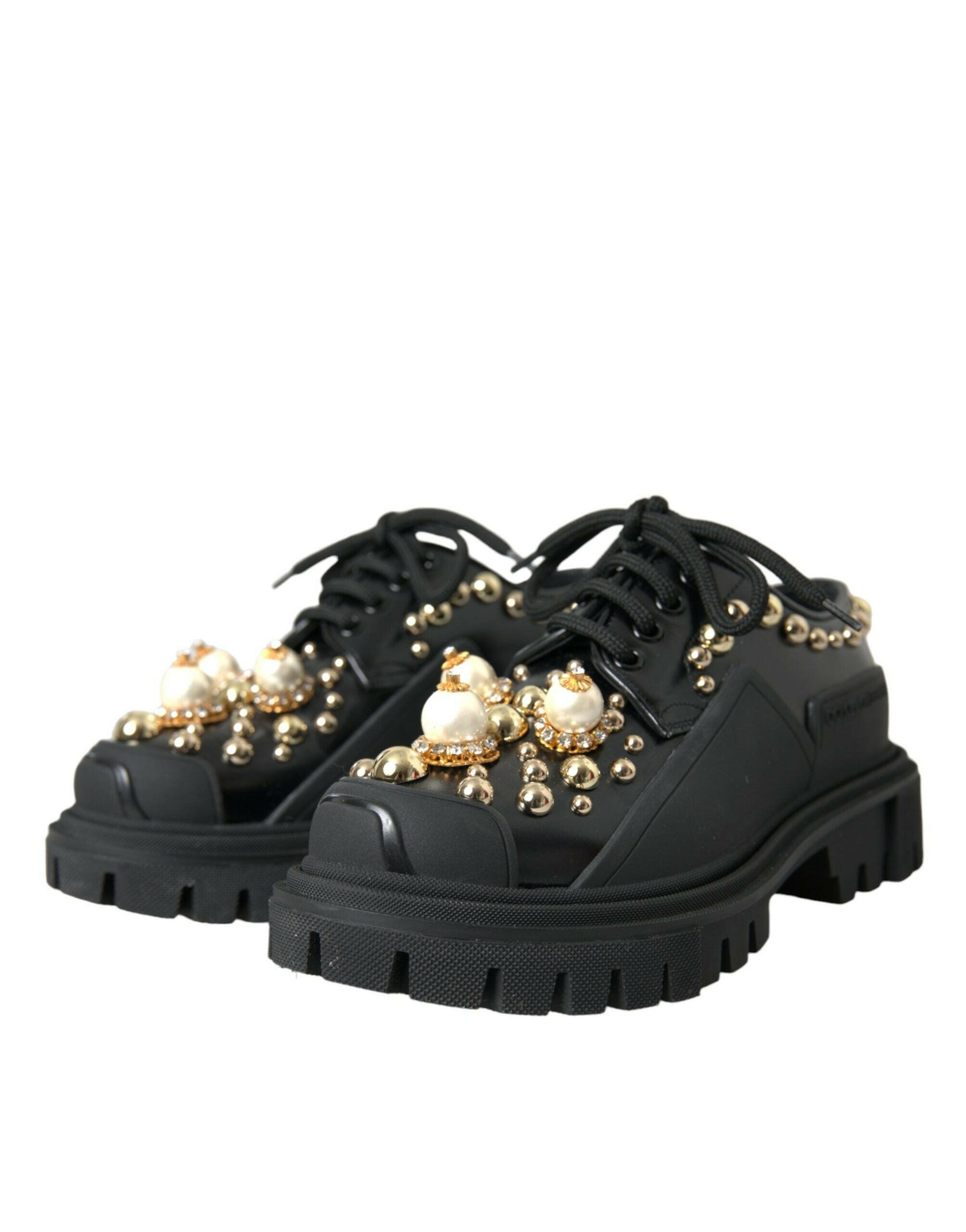 Dolce & Gabbana Black Leather Trekking Derby Embellished Shoes