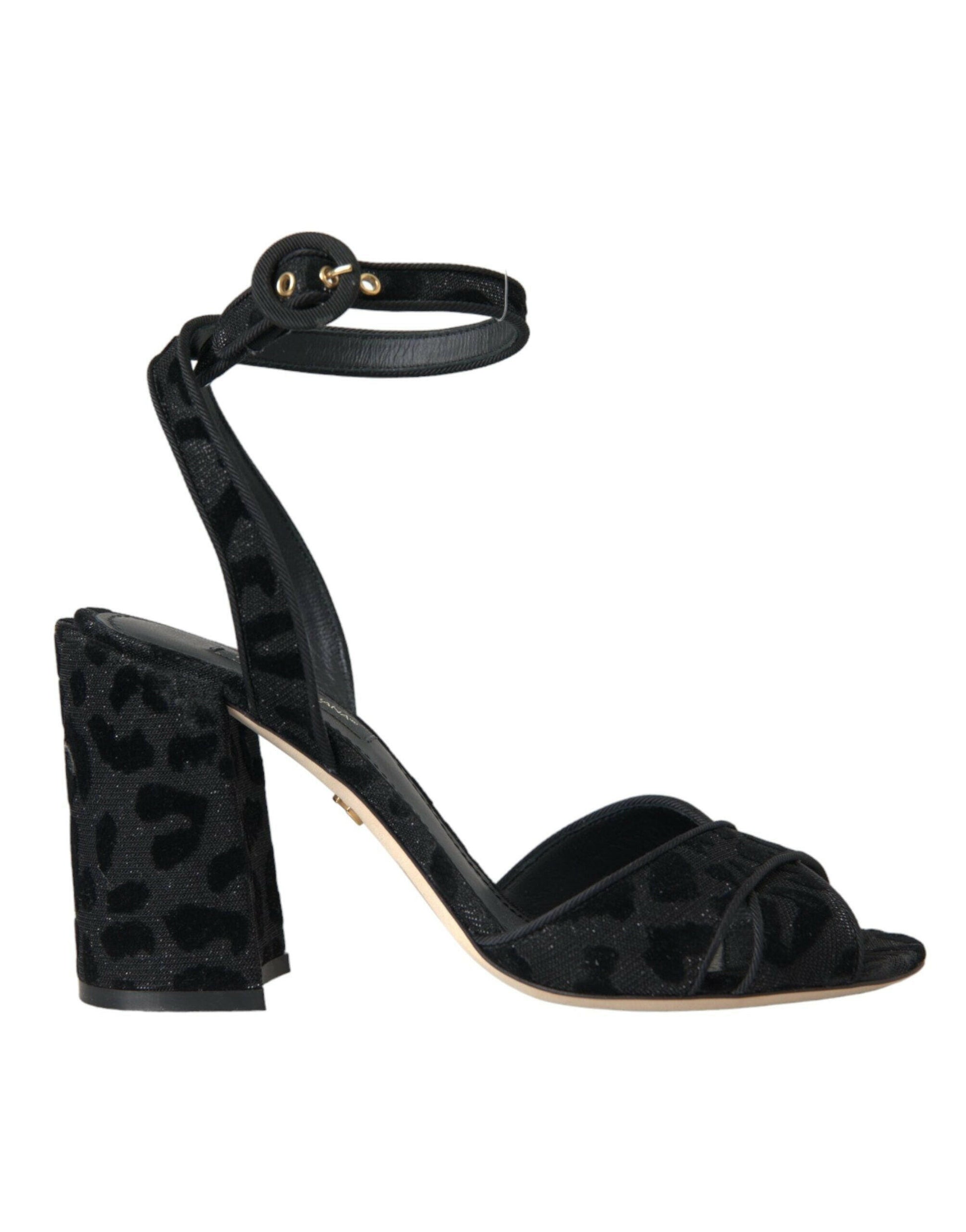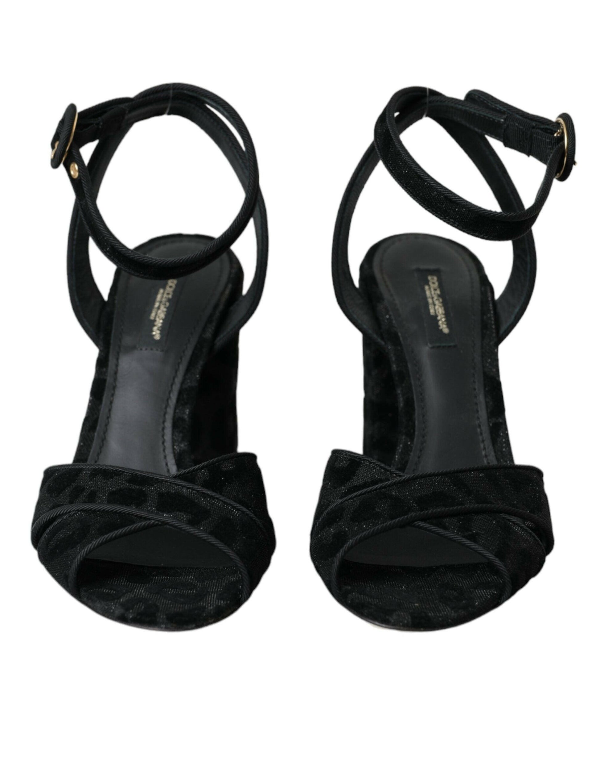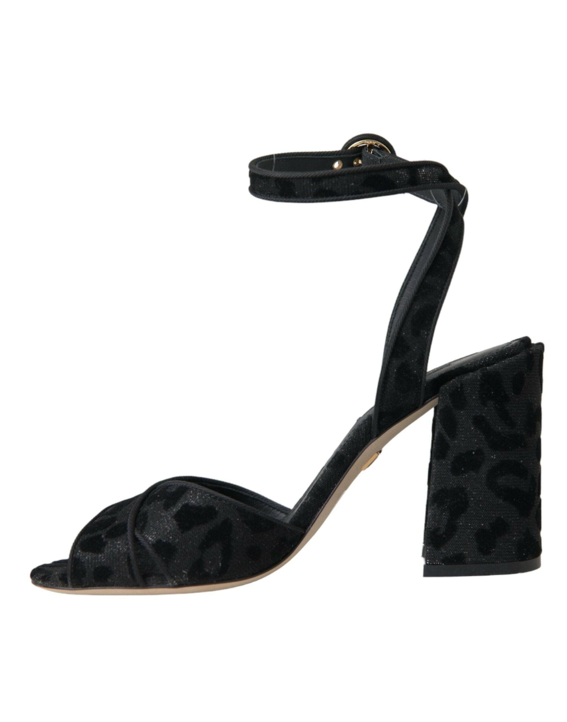 Dolce & Gabbana Black Leopard Suede Heels Sandals Shoes