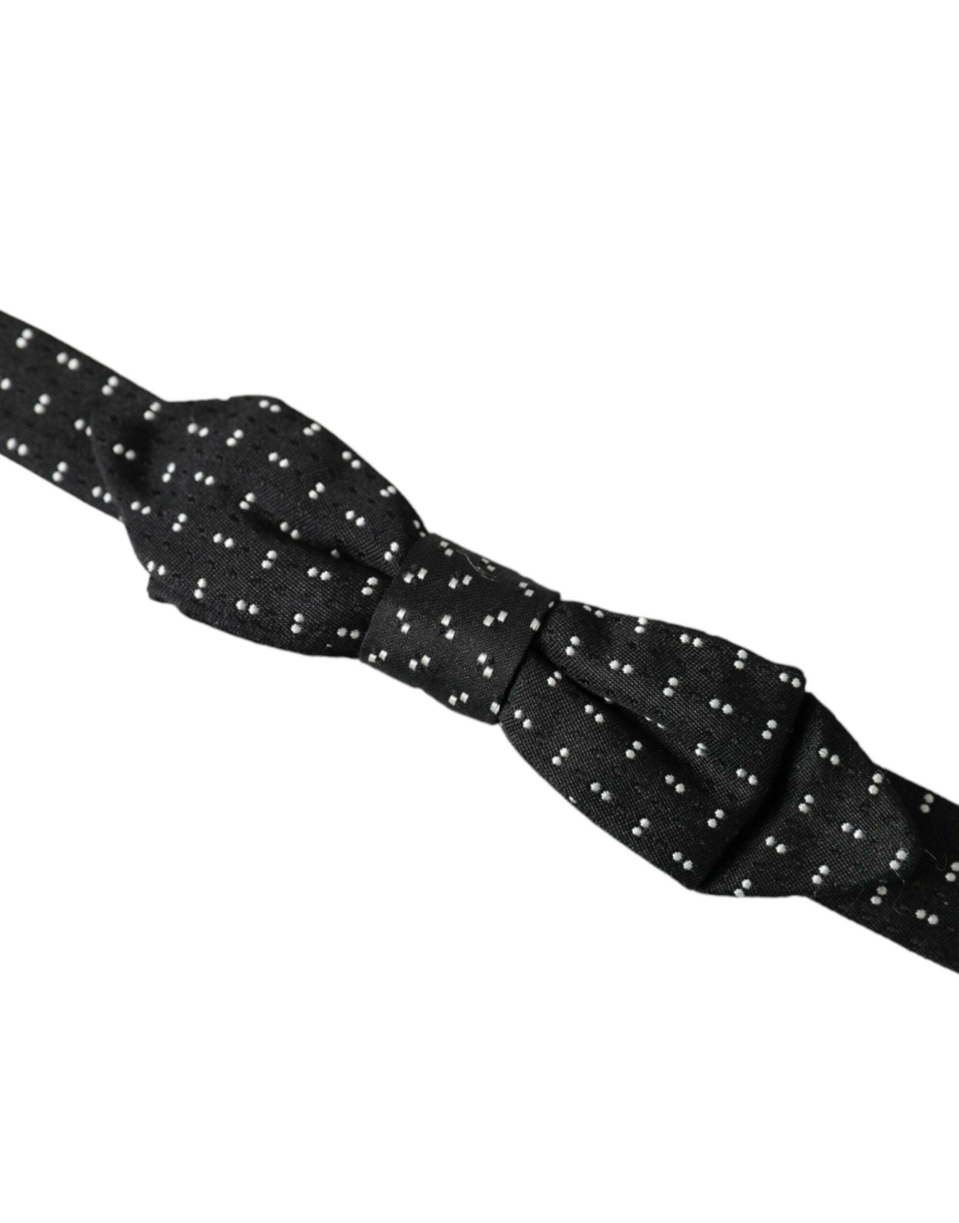 Dolce & Gabbana Black Silk Patterned Adjustable Neck Men Papillon Bow Tie