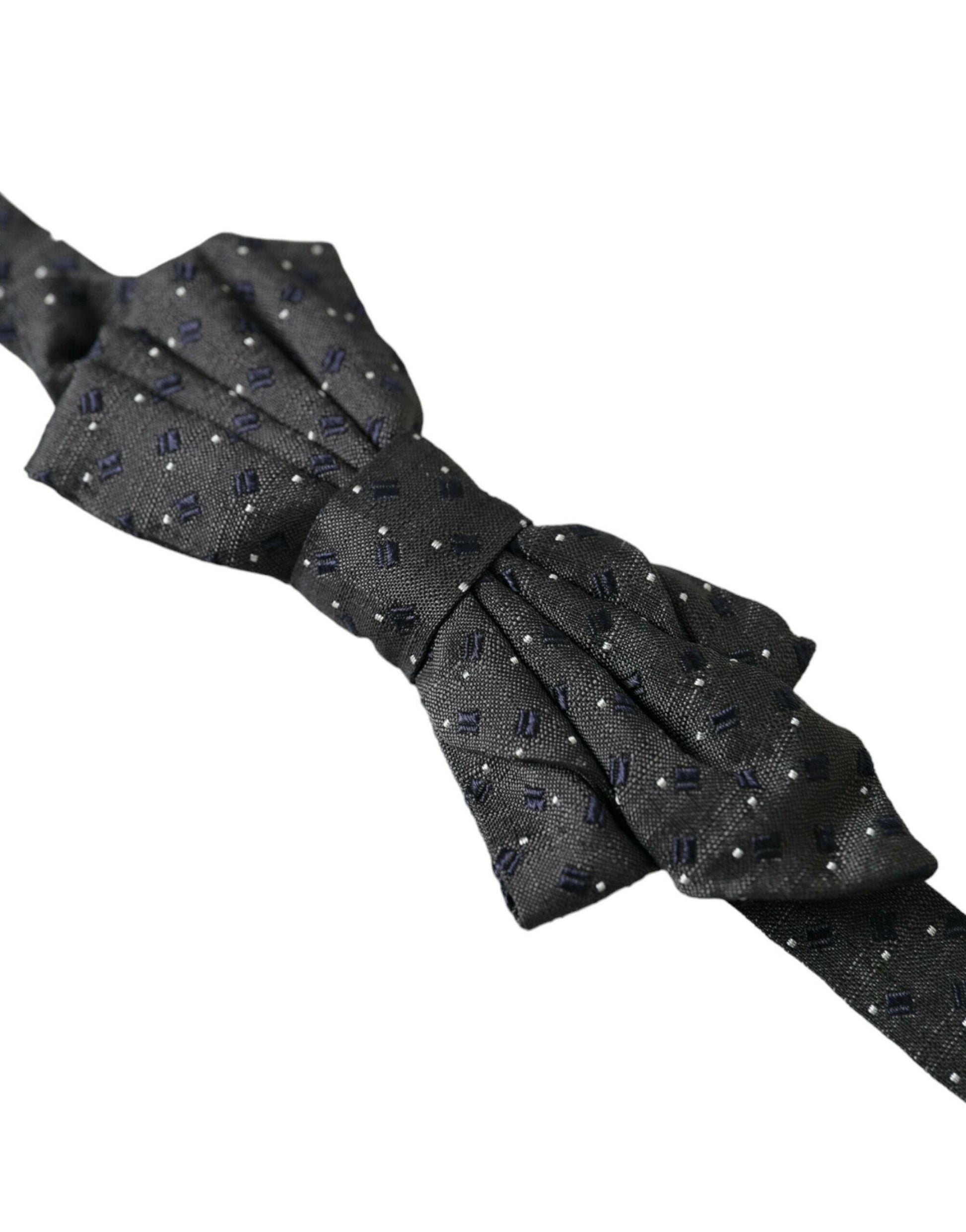 Dolce & Gabbana Black Silk Patterned Adjustable Neck Men Papillon Bow Tie